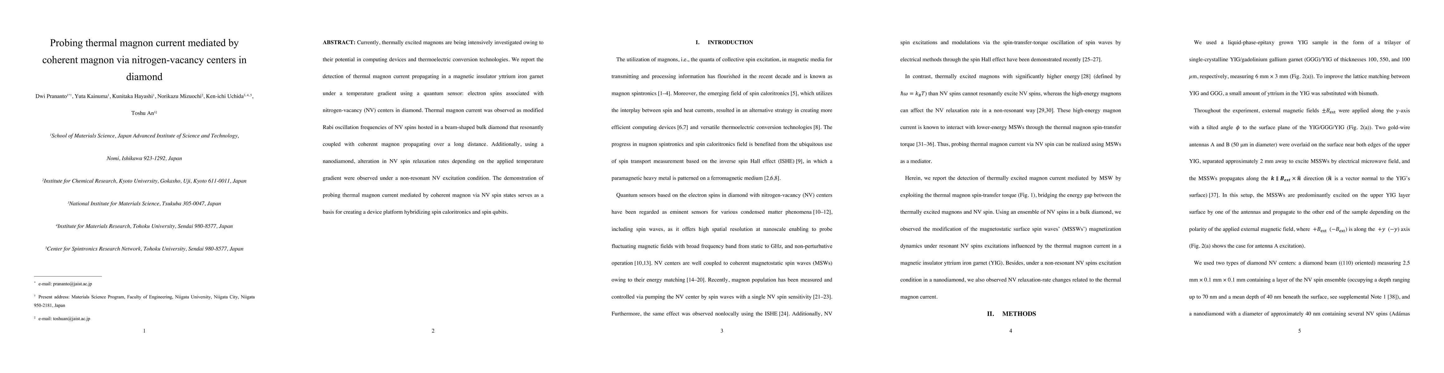 This paper reports the detection of thermal magnon currents in yttrium iron garnet using nitrogen-vacancy centers in diamond as quantum sensors, observing modified Rabi oscillations and altered spin relaxation rates. This method lays the foundation for integrating spin caloritronics with spin qubits in future devices.