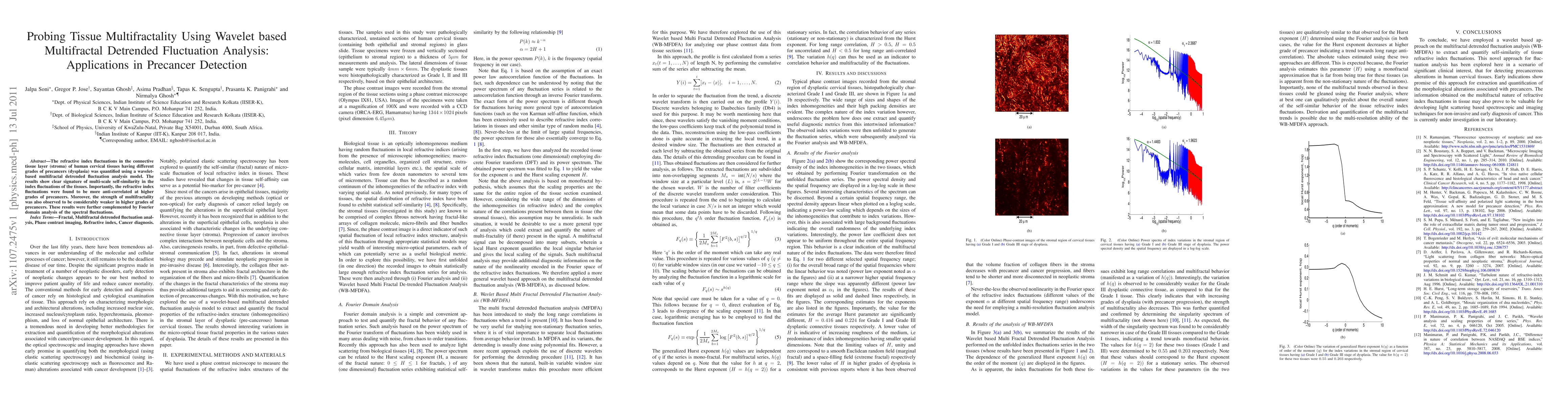 This study employs wavelet-based multifractal detrended fluctuation analysis to quantify refractive index fluctuations in cervical tissues with varying degrees of precancer, revealing multi-scale self-similarity and stronger anti-correlation in higher grades of precancer. The findings indicate a weakening of multifractality in more advanced precancer stages, corroborated by Fourier domain spectral analysis.