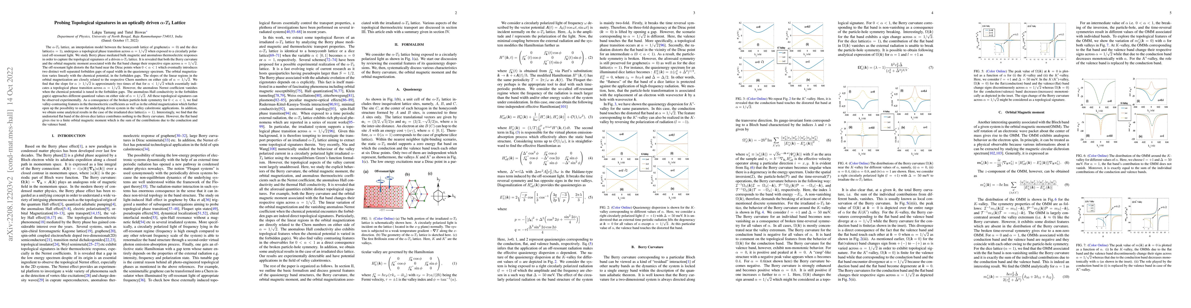 This study investigates topological signatures in an optically driven $\alpha$-$T_3$ lattice, revealing a phase transition at $\alpha=1/\sqrt{2}$. The research highlights how off-resonant light induces distinct forbidden gaps and topological changes in Berry curvature and orbital magnetization, marking a transition in Chern numbers and anomalous Hall conductivity.