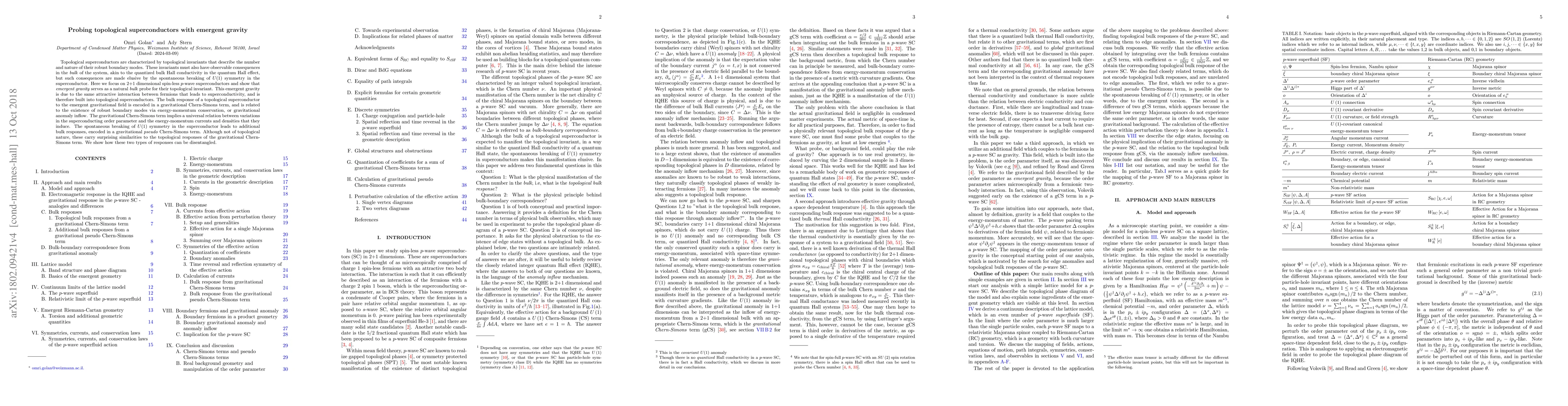 This paper investigates how emergent gravity can reveal the topological invariants of 2+1 dimensional spin-less p-wave superconductors, showing that the gravitational Chern-Simons term encodes the bulk response related to the topological boundary modes. It also explores the gravitational pseudo Chern-Simons term, which arises from the spontaneous breaking of $U(1)$ symmetry, and demonstrates how these distinct responses can be distinguished.