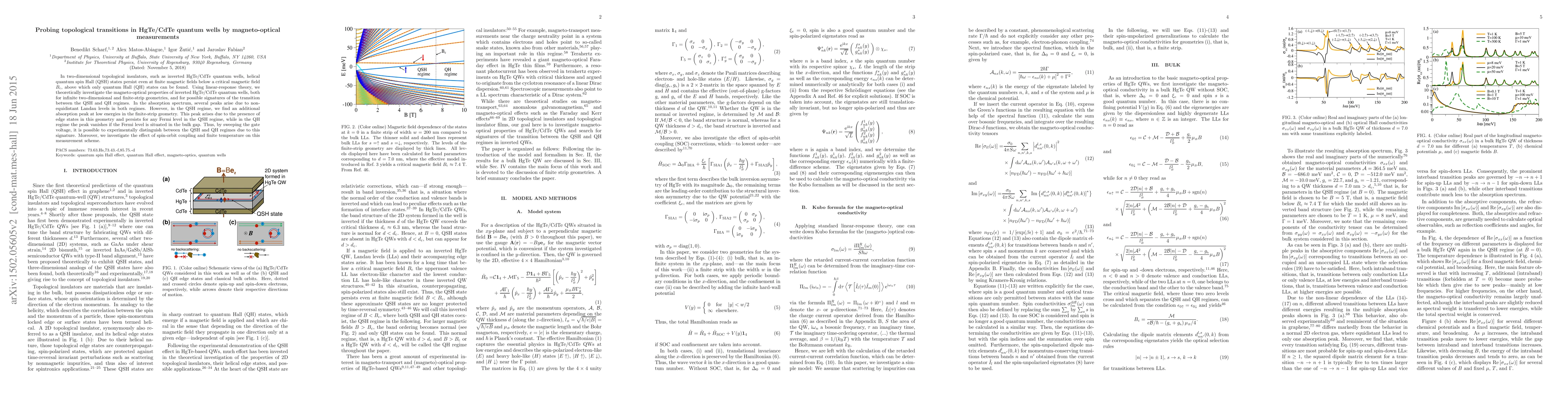 In two-dimensional topological insulators, such as inverted HgTe/CdTe quantum wells, helical quantum spin Hall (QSH) states persist even at finite magnetic fields below a critical magnetic field $B_\mathrm{c}$, above which only quantum Hall (QH) states can be found. Using linear-response theory, we theoretically investigate the magneto-optical properties of inverted HgTe/CdTe quantum wells, both for infinite two-dimensional and finite-strip geometries, and possible signatures of the transition between the QSH and QH regimes. In the absorption spectrum, several peaks arise due to non-equidistant Landau levels in both regimes. However, in the QSH regime, we find an additional absorption peak at low energies in the finite-strip geometry. This peak arises due to the presence of edge states in this geometry and persists for any Fermi level in the QSH regime, while in the QH regime the peak vanishes if the Fermi level is situated in the bulk gap. Thus, by sweeping the gate voltage, it is possible to experimentally distinguish between the QSH and QH regimes due to this signature. Moreover, we investigate the effect of spin-orbit coupling and finite temperature on this measurement scheme.