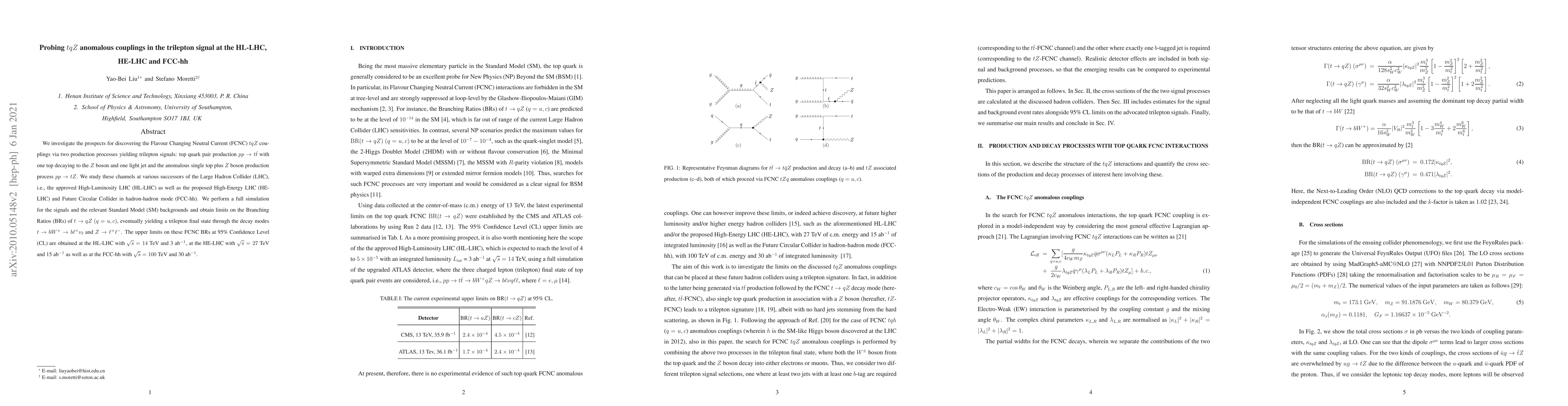 This paper explores the potential for discovering Flavour Changing Neutral Current (FCNC) $tqZ$ couplings via trilepton signals at the HL-LHC, HE-LHC, and FCC-hh. It simulates top quark pair and single top plus $Z$ boson production processes, obtaining upper limits on the Branching Ratios of $t\to qZ$ at various future collider energies and luminosities.