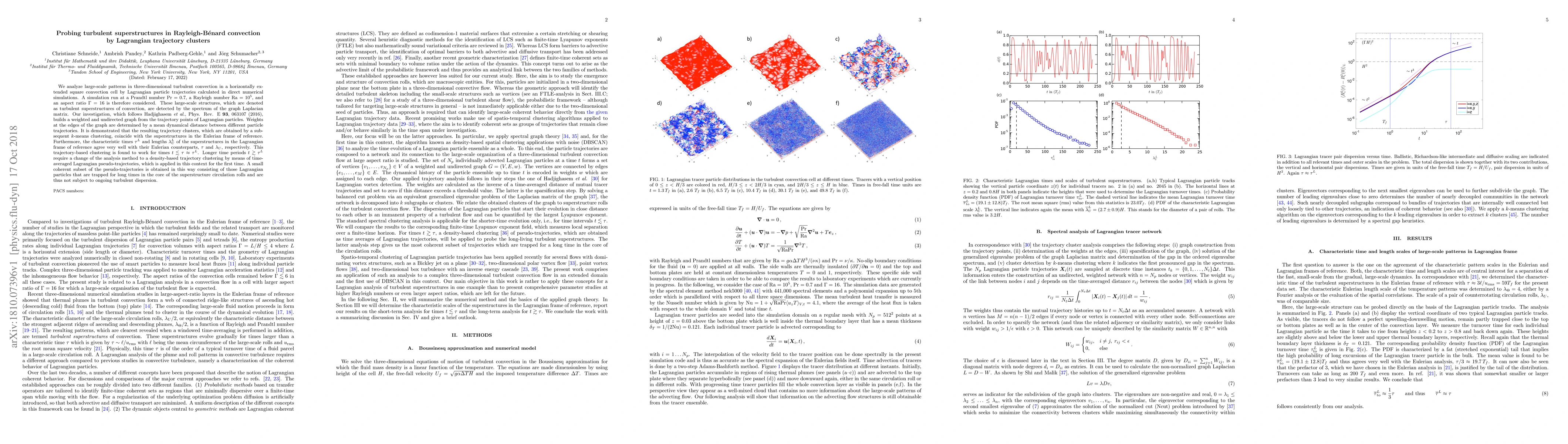 Researchers analyzed large-scale turbulent patterns in convection using Lagrangian particle trajectories, finding that trajectory clustering can identify similar structures as Eulerian analysis, with some limitations at longer times.