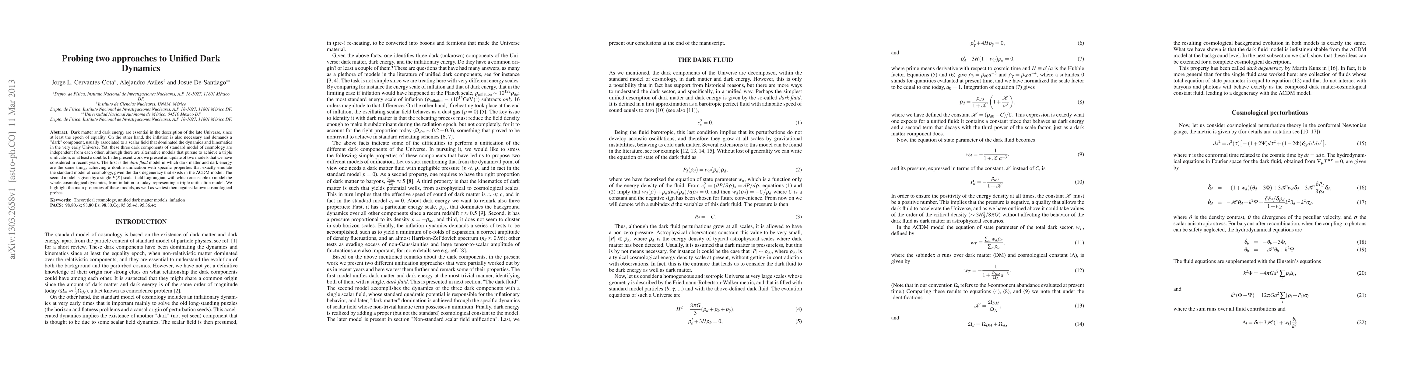 Dark matter and dark energy are essential in the description of the late Universe, since at least the epoch of equality. On the other hand, the inflation is also necessary and demands a "dark" component, usually associated to a scalar field that dominated the dynamics and kinematics in the very early Universe. Yet, these three dark components of standard model of cosmology are independent from each other, although there are alternative models that pursue to achieve a triple unification, or at least a double. In the present work we present an update of two models that we have considered in recent years. The first is the "dark fluid" model in which dark matter and dark energy are the same thing, achieving a double unification with specific properties that exactly emulate the standard model of cosmology, given the dark degeneracy that exists in the LCDM model. The second model is given by a single F(X) scalar field Lagrangian, with which one is able to model the whole cosmological dynamics, from inflation to today, representing a triple unification model. We highlight the main properties of these models, as well as we test them against known cosmological probes.