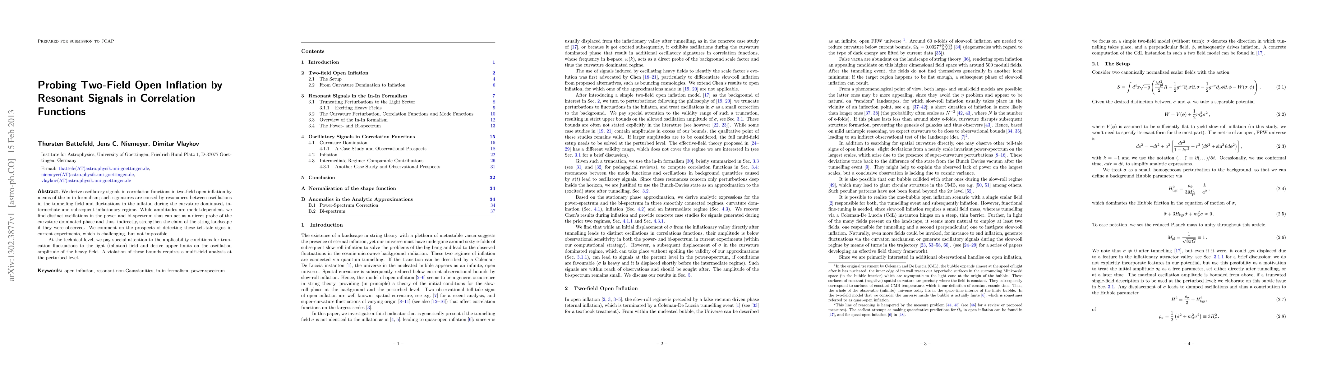 Researchers found oscillatory signals in correlation functions of two-field open inflation that could be used to detect a specific phase of the inflationary process. These signals may provide evidence for the string landscape if detected.