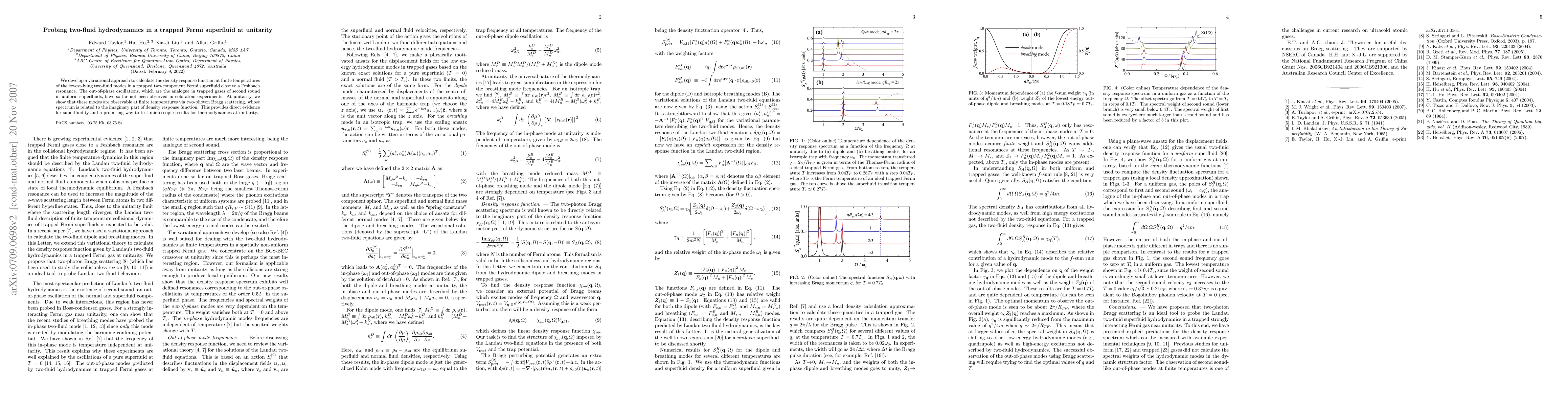This paper develops a variational approach to study the density response function of two-fluid modes in a trapped Fermi superfluid near unitarity, revealing observable out-of-phase oscillations via two-photon Bragg scattering, offering a method to test superfluidity and thermodynamic predictions.