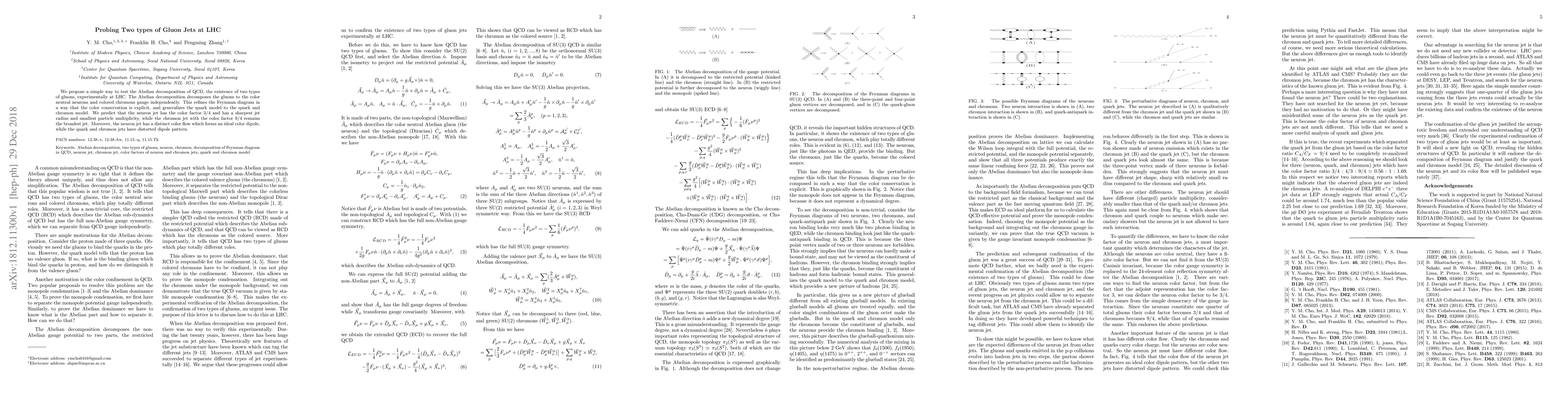 We propose a simple way to test the Abelian decomposition of QCD, the existence of two types of gluons, experimentally at LHC. The Abelian decomposition decomposes the gluons to the color neutral neurons and colored chromons gauge independently. This refines the Feynman diagram in a way that the color conservation is explicit, and generalizes the quark model to the quark and chromon model. We predict that the neuron jet has the color factor 3/4 and has a sharpest jet radius and smallest particle multiplicity, while the chromon jet with the color factor 9/4 remains the broadest jet. Moreover, the neuron jet has a distinct color flow which forms an ideal color dipole, while the quark and chromon jets have distorted dipole pattern.