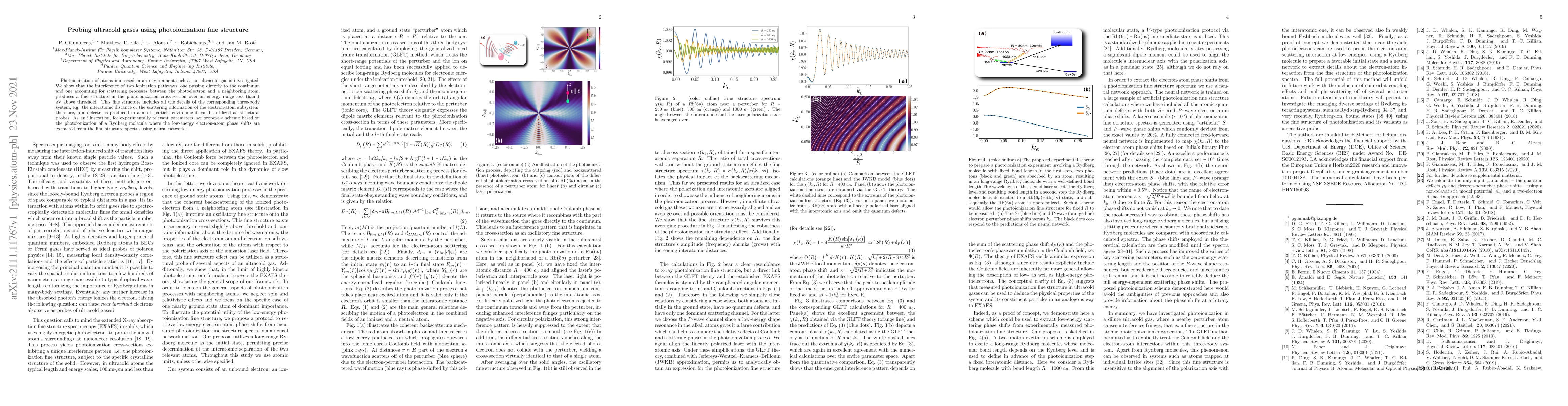 Photoionization of atoms immersed in an environment such as an ultracold gas is investigated. We show that the interference of two ionization pathways, one passing directly to the continuum and one accounting for scattering processes between the photoelectron and a neighboring atom, produces a fine structure in the photoionization cross-section over an energy range less than 1 eV above threshold. This fine structure includes all the details of the corresponding three-body system, e.g. the interatomic distance or the scattering information of the electron-atom subsystem; therefore, photoelectrons produced in a multi-particle environment can be utilized as structural probes. As an illustration, for experimentally relevant parameters, we propose a scheme based on the photoionization of a Rydberg molecule where the low-energy electron-atom phase shifts are extracted from the fine structure spectra using neural networks.