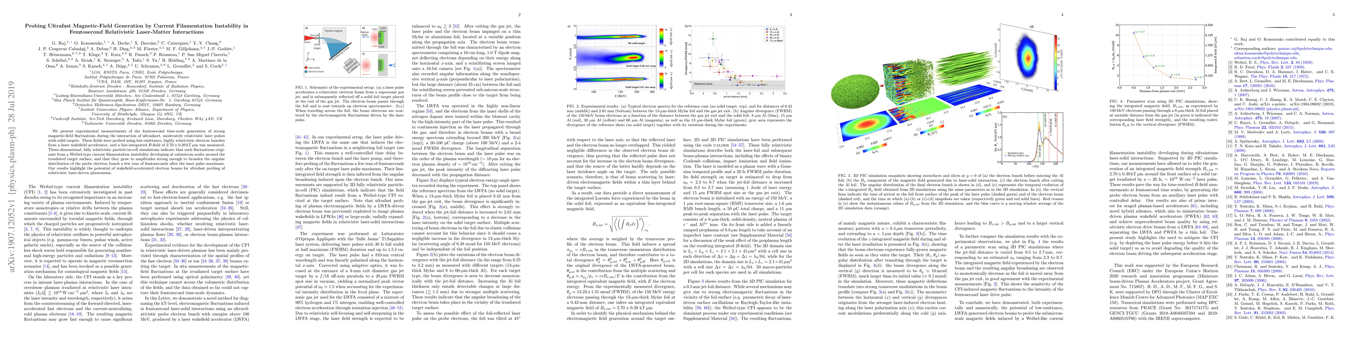 This paper reports experimental measurements of ultrafast magnetic-field generation during relativistic laser-matter interactions, revealing strong fluctuations due to a Weibel-type current filamentation instability. The study uses laser wakefield-accelerated electron beams to probe these fields, demonstrating their potential for investigating relativistic phenomena.