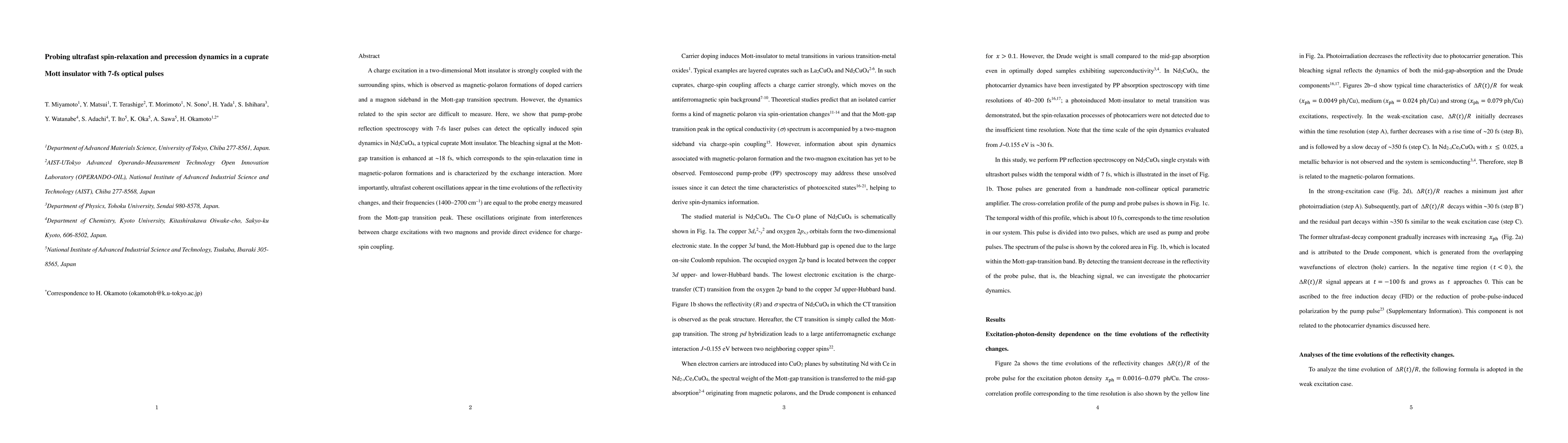 This study utilizes 7-fs optical pulses to probe ultrafast spin dynamics in Nd$_2$CuO$_4$, revealing enhanced bleaching signals linked to spin-relaxation times and coherent oscillations indicating charge-spin coupling through magnon interferences.