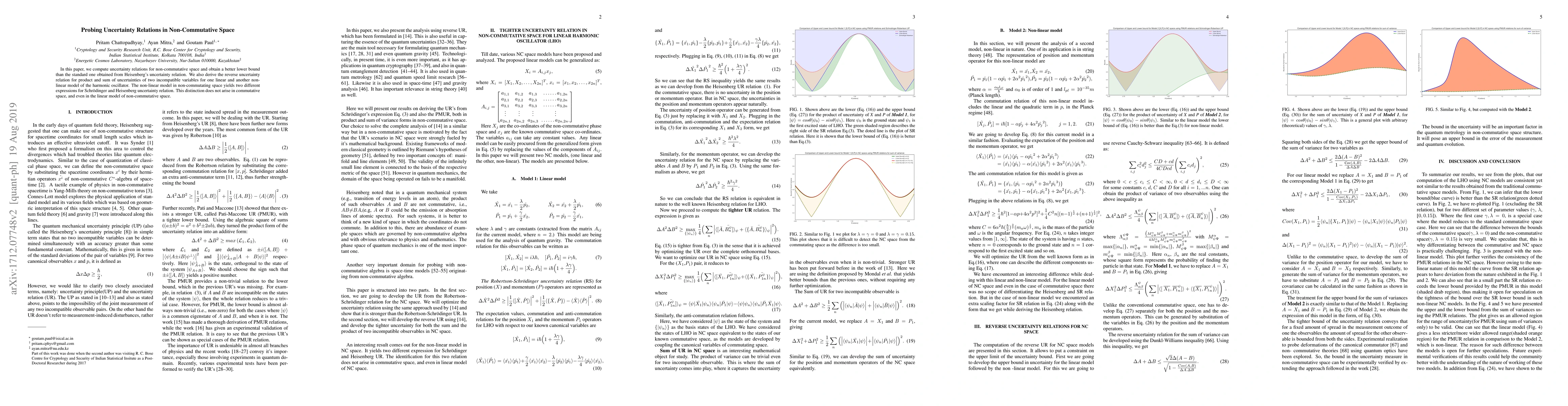 This paper computes uncertainty relations in non-commutative space, achieving a better lower bound than the standard Heisenberg relation. It also derives reverse uncertainty relations for two models, revealing distinct expressions for Schrödinger and Heisenberg uncertainty relations in the non-linear model.