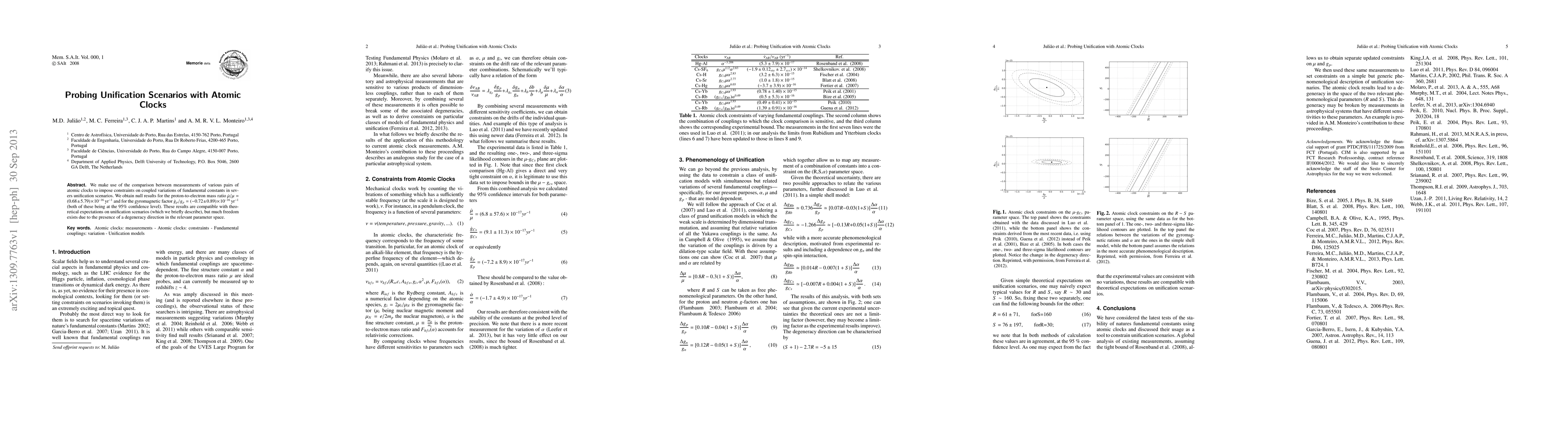 We make use of the comparison between measurements of various pairs of atomic clocks to impose constraints on coupled variations of fundamental constants in severs unification scenarios. We obtain null results for the proton-to-electron mass ratio ${\dot\mu}/{\mu}=(0.68\pm5.79)\times10^{-16}\, {\rm yr}{}^{-1}$ and for the gyromagnetic factor ${\dot g_p}/{g_p}=(-0.72\pm0.89)\times10^{-16}\, {\rm yr}{}^{-1}$ (both of these being at the 95% confidence level). These results are compatible with theoretical expectations on unification scenarios (which we briefly describe), but much freedom exists due to the presence of a degeneracy direction in the relevant parameter space.