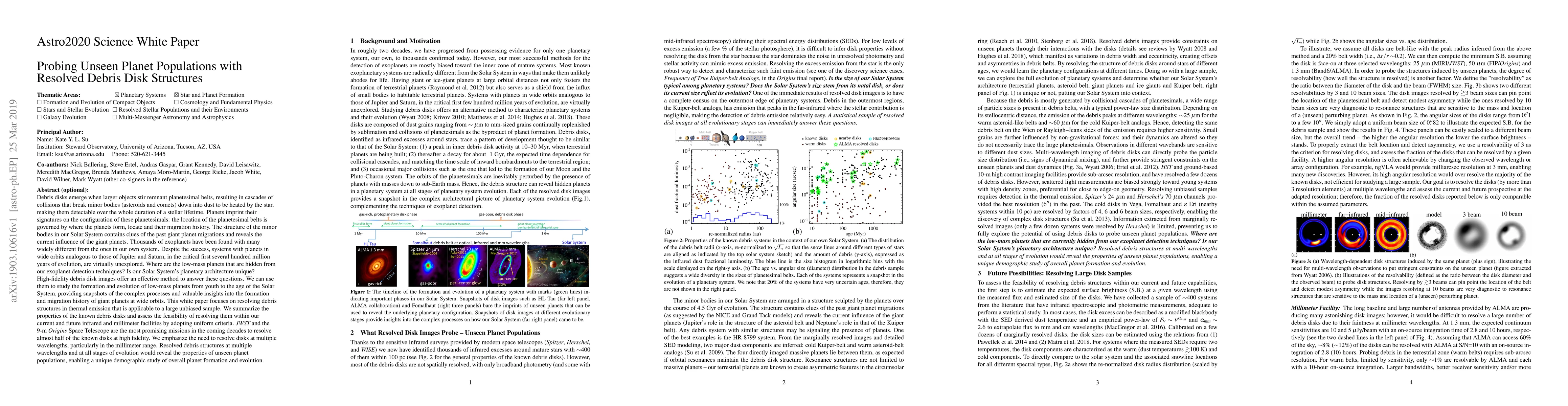 This paper explores the potential of high-fidelity debris disk imaging to uncover unseen low-mass planet populations, particularly those in wide orbits, using current and future infrared and millimeter facilities like JWST and the Origins Space Telescope. It assesses the feasibility of resolving debris structures to gain insights into the formation and evolution of giant planets.