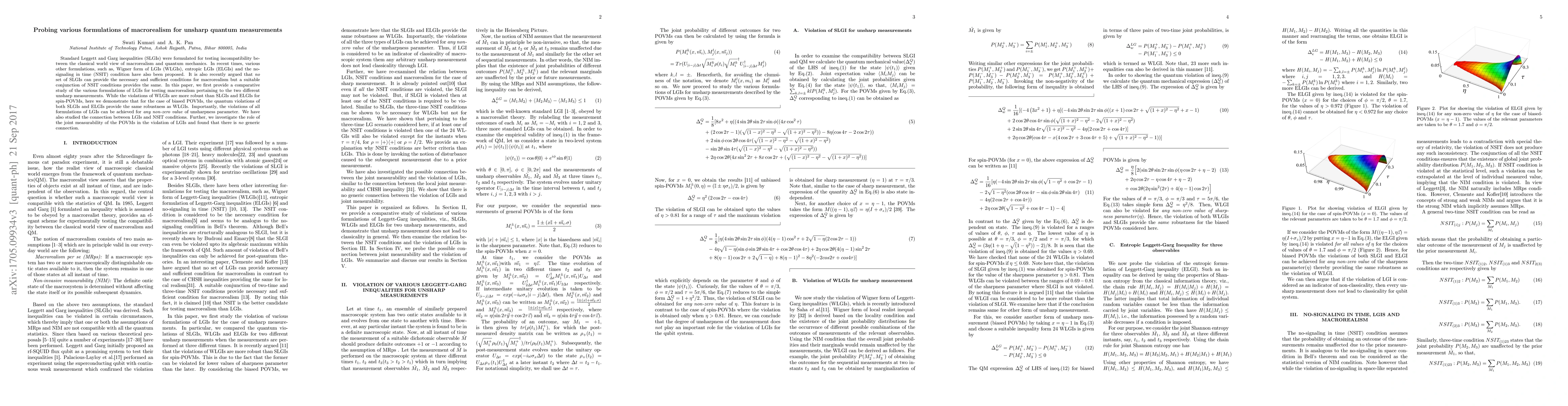 This paper compares various formulations of Leggett-Garg inequalities (LGIs) for testing macrorealism in unsharp quantum measurements, showing that while different formulations exhibit varying robustness, all can be violated for any non-zero unsharpness. It also explores the relationship between LGIs and no-signaling in time conditions, concluding that joint measurability of POVMs does not generally affect LGI violations.