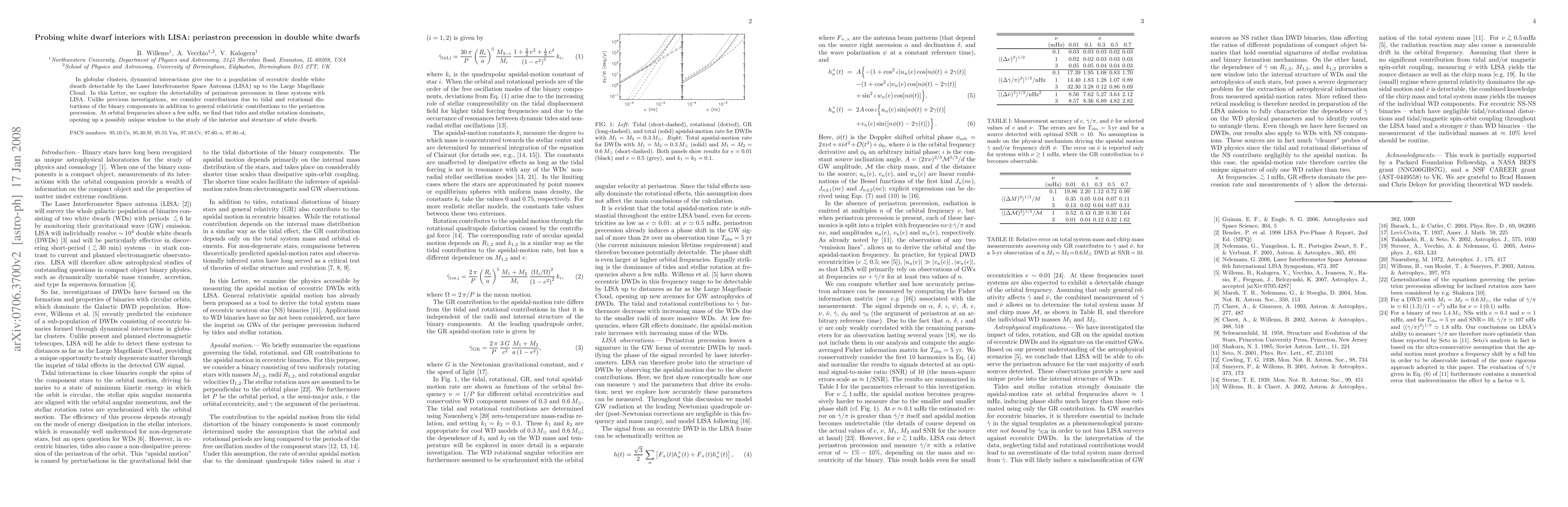 In globular clusters, dynamical interactions give rise to a population of eccentric double white dwarfs detectable by the Laser Interferometer Space Antenna (LISA) up to the Large Magellanic Cloud. In this Letter, we explore the detectability of periastron precession in these systems with LISA. Unlike previous investigations, we consider contributions due to tidal and rotational distortions of the binary components in addition to general relativistic contributions to the periastron precession. At orbital frequencies above a few mHz, we find that tides and stellar rotation dominate, opening up a possibly unique window to the study of the interior and structure of white dwarfs.