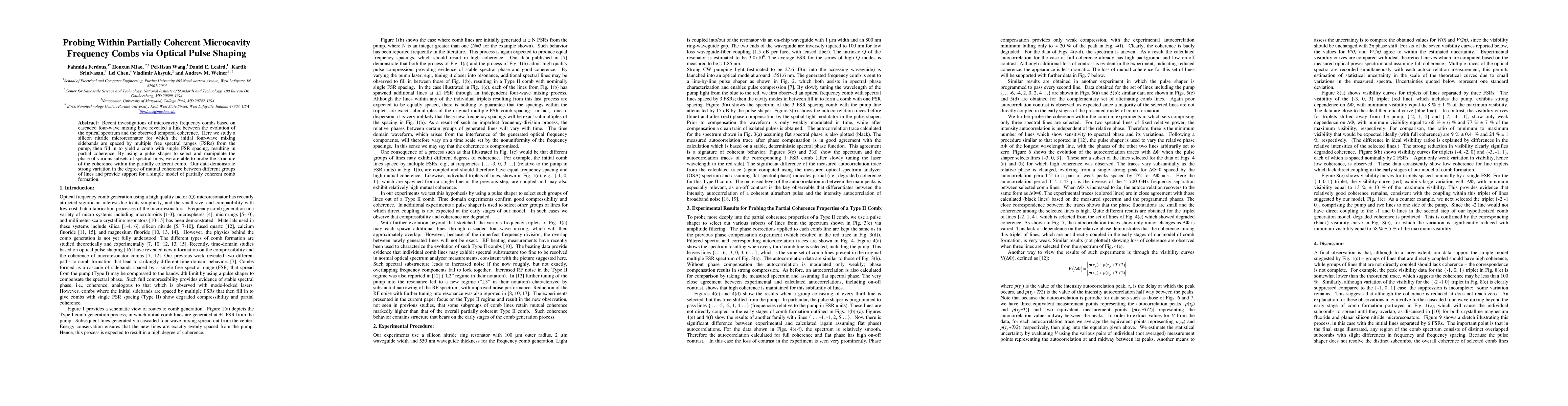 This paper explores the coherence structure within a partially coherent microcavity frequency comb generated via cascaded four-wave mixing in a silicon nitride microresonator. Using optical pulse shaping, the researchers investigate the mutual coherence between different spectral lines, revealing significant variations and supporting a model of comb formation.