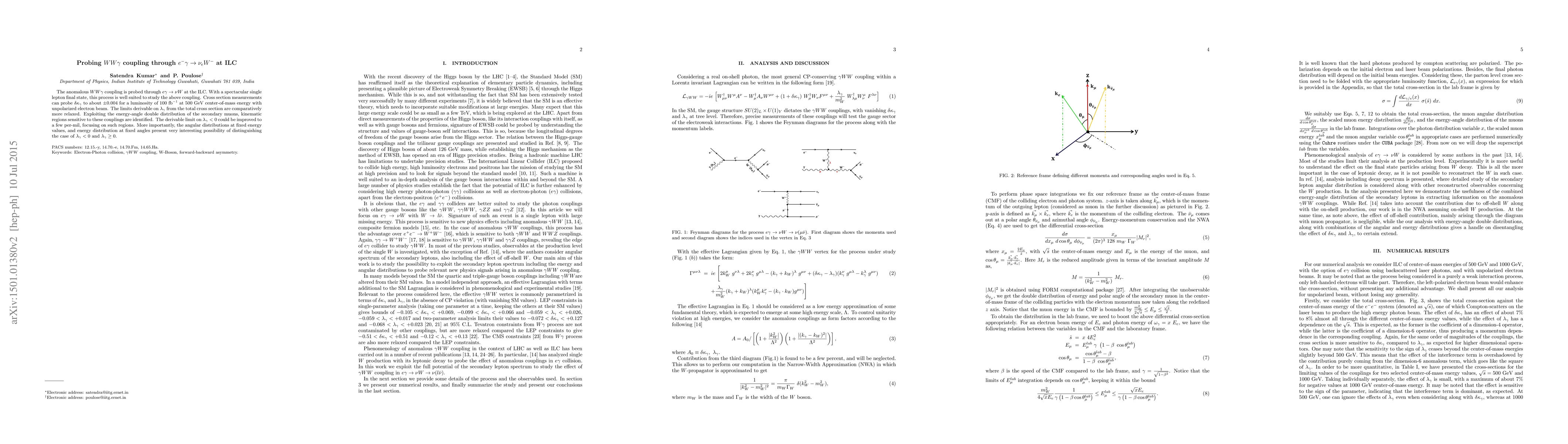 The anomalous $WW\gamma$ coupling is probed through $e\gamma\rightarrow \nu W$ at the ILC. With a spectacular single lepton final state, this process is well suited to study the above coupling. Cross section measurements can probe $\delta \kappa_\gamma$ to about $\pm 0.004$ for a luminosity of 100 fb$^{-1}$ at $500$ GeV center-of-mass energy with unpolarized electron beam. The limits derivable on $\lambda_\gamma$ from the total cross section are comparatively more relaxed. Exploiting the energy-angle double distribution of the secondary muons, kinematic regions sensitive to these couplings are identified. The derivable limit on $\lambda_\gamma < 0$ could be improved to a few per-mil, focusing on such regions. More importantly, the angular distributions at fixed energy values, and energy distribution at fixed angles present very interesting possibility of distinguishing the case of $\lambda_\gamma <0$ and $\lambda_\gamma \ge 0$.
