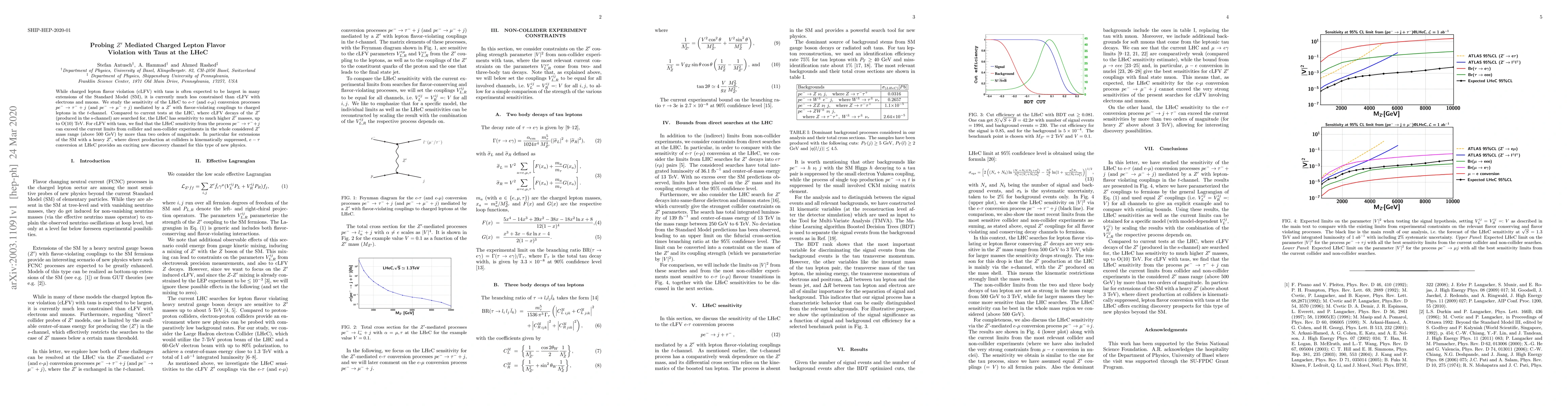 While charged lepton flavor violation (cLFV) with taus is often expected to be largest in many extensions of the Standard Model (SM), it is currently much less constrained than cLFV with electrons and muons. We study the sensitivity of the LHeC to $e$-$\tau$ (and $e$-$\mu$) conversion processes $p e^- \to \tau^- + j$ (and $p e^- \to \mu^- + j$) mediated by a $Z'$ with flavor-violating couplings to charged leptons in the $t$-channel. Compared to current tests at the LHC, where cLFV decays of the $Z'$ (produced in the s-channel) are searched for, the LHeC has sensitivity to much higher $Z'$ masses, up to O(10) TeV. For cLFV with taus, we find that the LHeC sensitivity from the process $p e^- \to \tau^- + j$ can exceed the current limits from collider and non-collider experiments in the whole considered $Z'$ mass range (above $500$ GeV) by more than two orders of magnitude. In particular for extensions of the SM with a heavy $Z'$, where direct production at colliders is kinematically suppressed, $e-\tau$ conversion at LHeC provides an exciting new discovery channel for this type of new physics.