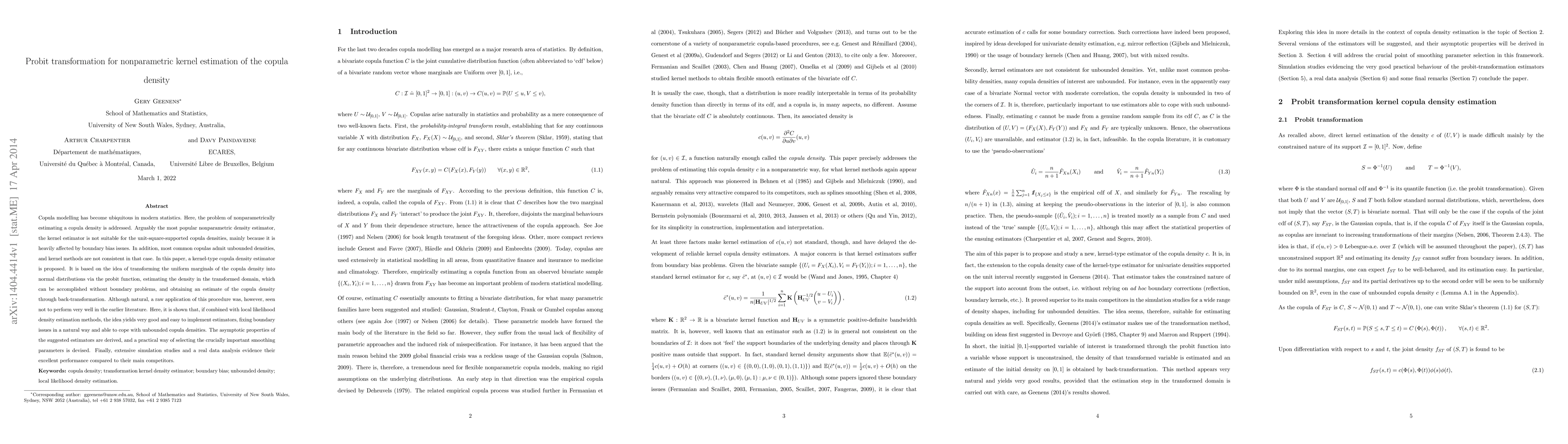 This paper proposes a kernel-type copula density estimator that uses the probit transformation to convert uniform marginals into normal distributions, enabling boundary-free estimation and handling unbounded densities. Combined with local likelihood methods, it provides effective and easy-to-implement estimators, supported by asymptotic properties and practical smoothing parameter selection, as evidenced by simulations and real data analysis.