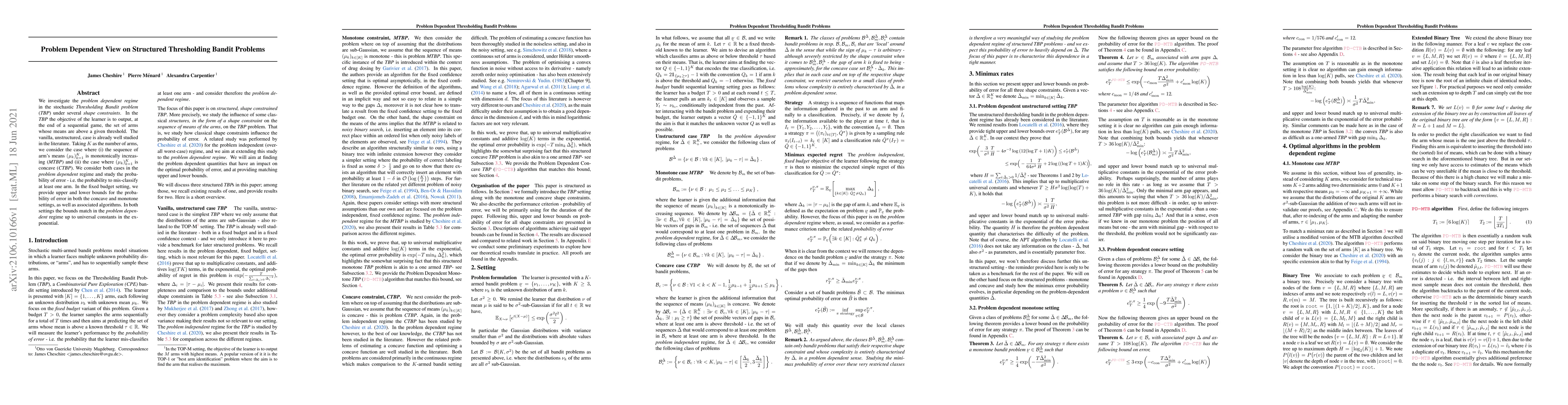We investigate the problem dependent regime in the stochastic Thresholding Bandit problem (TBP) under several shape constraints. In the TBP, the objective of the learner is to output, at the end of a sequential game, the set of arms whose means are above a given threshold. The vanilla, unstructured, case is already well studied in the literature. Taking $K$ as the number of arms, we consider the case where (i) the sequence of arm's means $(\mu_k)_{k=1}^K$ is monotonically increasing (MTBP) and (ii) the case where $(\mu_k)_{k=1}^K$ is concave (CTBP). We consider both cases in the problem dependent regime and study the probability of error - i.e. the probability to mis-classify at least one arm. In the fixed budget setting, we provide upper and lower bounds for the probability of error in both the concave and monotone settings, as well as associated algorithms. In both settings the bounds match in the problem dependent regime up to universal constants in the exponential.