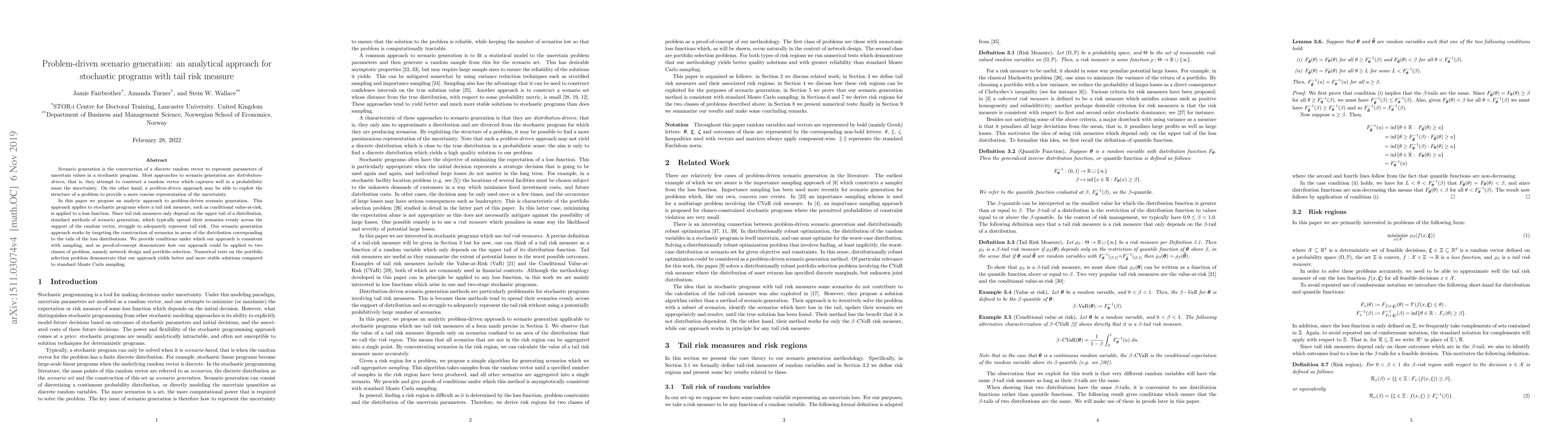 This paper proposes an analytical method for problem-driven scenario generation tailored for stochastic programs using tail risk measures. Unlike distribution-driven methods, this approach focuses on constructing scenarios that specifically capture the upper tail of loss distributions, providing more stable and effective solutions, as demonstrated in network design and portfolio selection applications.