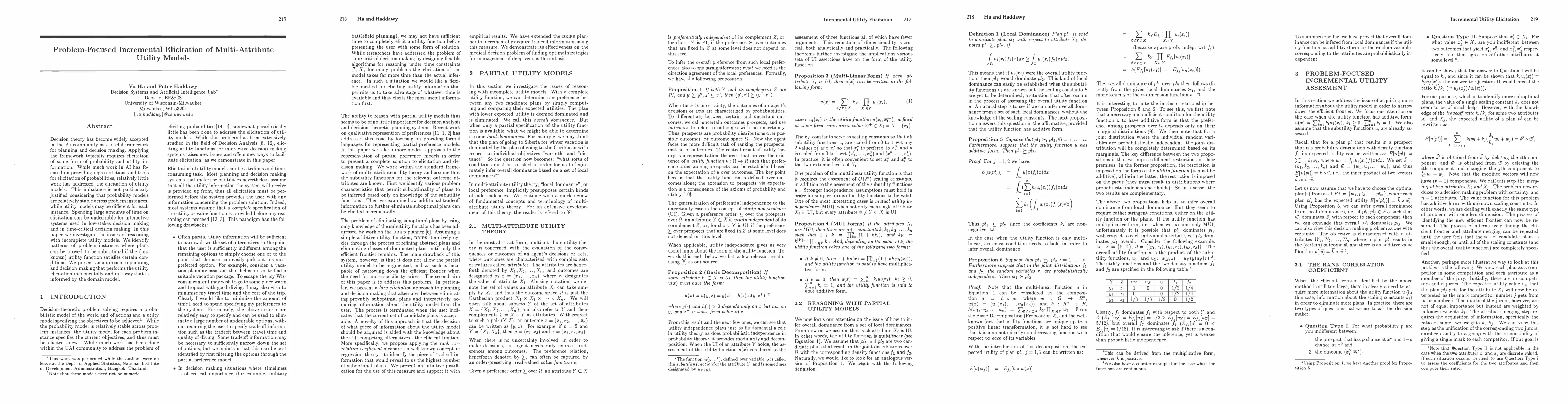 Researchers developed an approach to planning and decision making that can handle incomplete utility models by incrementally eliciting utility information from the domain model.