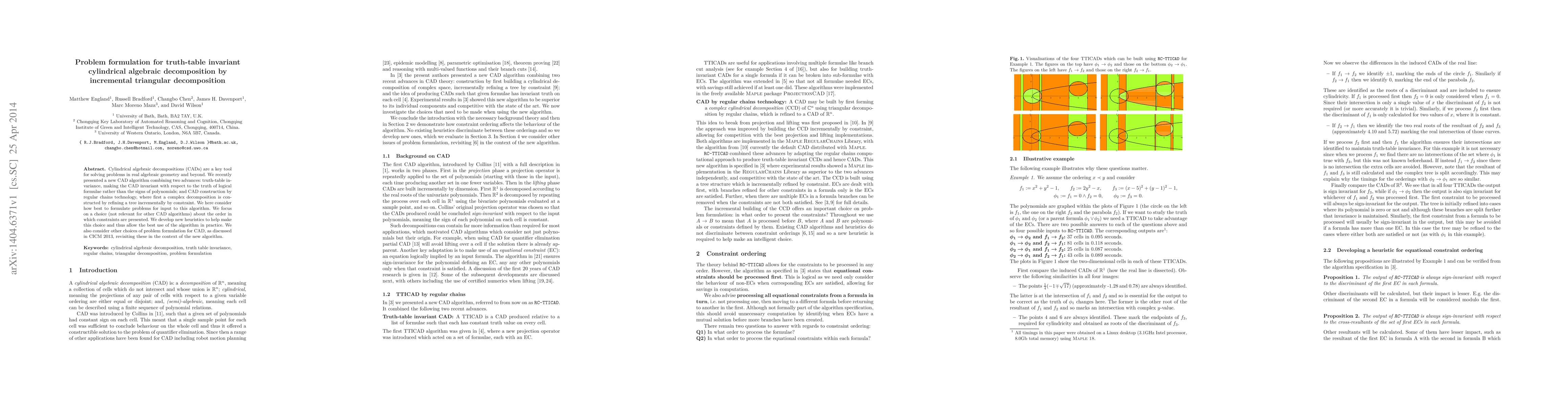 This paper explores problem formulation for a novel CAD algorithm that combines truth-table invariance and incremental triangular decomposition. It develops heuristics to optimize the order of constraint presentation, aiming to enhance the algorithm's practical utility.