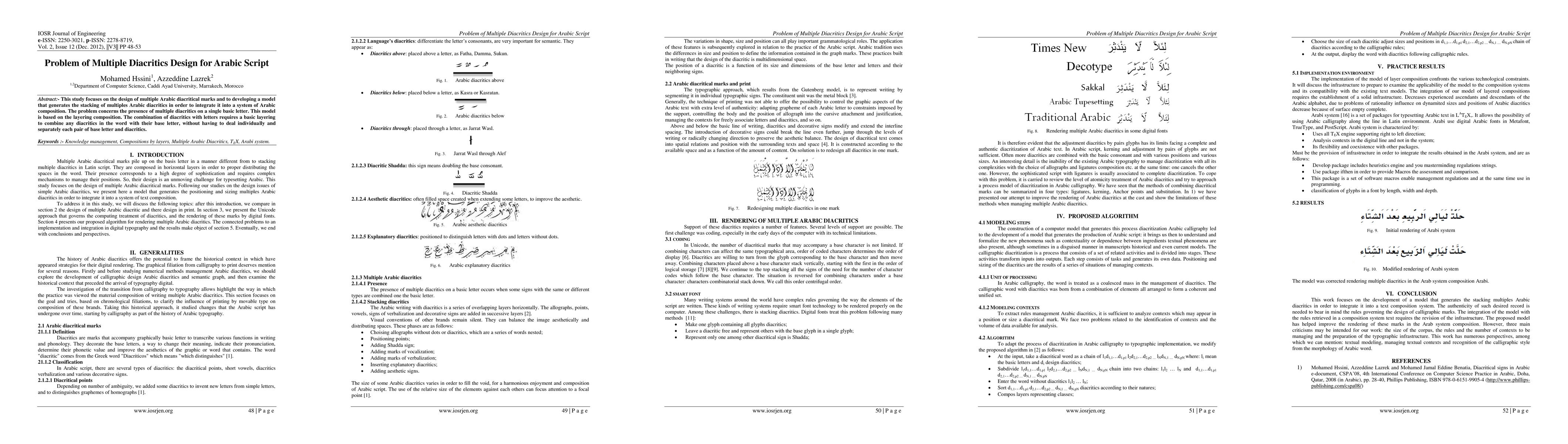 This study focuses on the design of multiple Arabic diacritical marks and to developing a model that generates the stacking of multiples Arabic diacritics in order to integrate it into a system of Arabic composition. The problem concerns the presence of multiple diacritics on a single basic letter. This model is based on the layering composition. The combination of diacritics with letters requires a basic layering to combine any diacritics in the word with their base letter, without having to deal individually and separately each pair of base letter and diacritics.