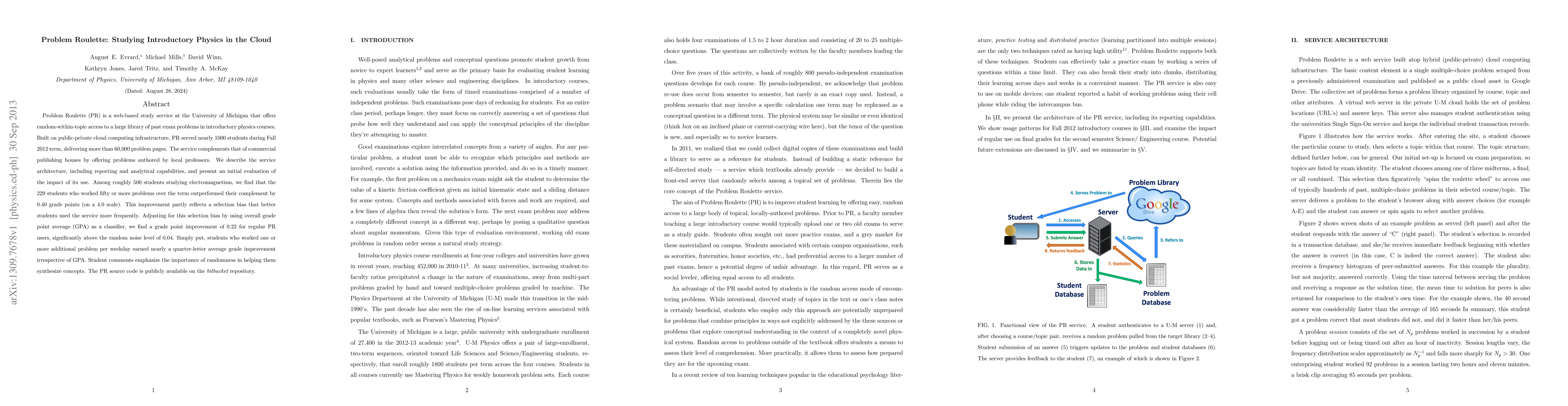 Problem Roulette (PR) is a web-based study service at the University of Michigan that offers random-within-topic access to a large library of past exam problems in introductory physics courses. Built on public-private cloud computing infrastructure, PR served nearly 1000 students during Fall 2012 term, delivering more than 60,000 problem pages. The service complements that of commercial publishing houses by offering problems authored by local professors. We describe the service architecture, including reporting and analytical capabilities, and present an initial evaluation of the impact of its use. Among roughly 500 students studying electromagnetism, we find that the 229 students who worked fifty or more problems over the term outperformed their complement by 0.40 grade points (on a 4.0 scale). This improvement partly reflects a selection bias that better students used the service more frequently. Adjusting for this selection bias by using overall grade point average (GPA) as a classifier, we find a grade point improvement of 0.22 for regular PR users, significantly above the random noise level of 0.04. Simply put, students who worked one or more additional problem per weekday earned nearly a quarter-letter average grade improvement irrespective of GPA. Student comments emphasize the importance of randomness in helping them synthesize concepts. The PR source code is publicly available on the bitbucket repository.