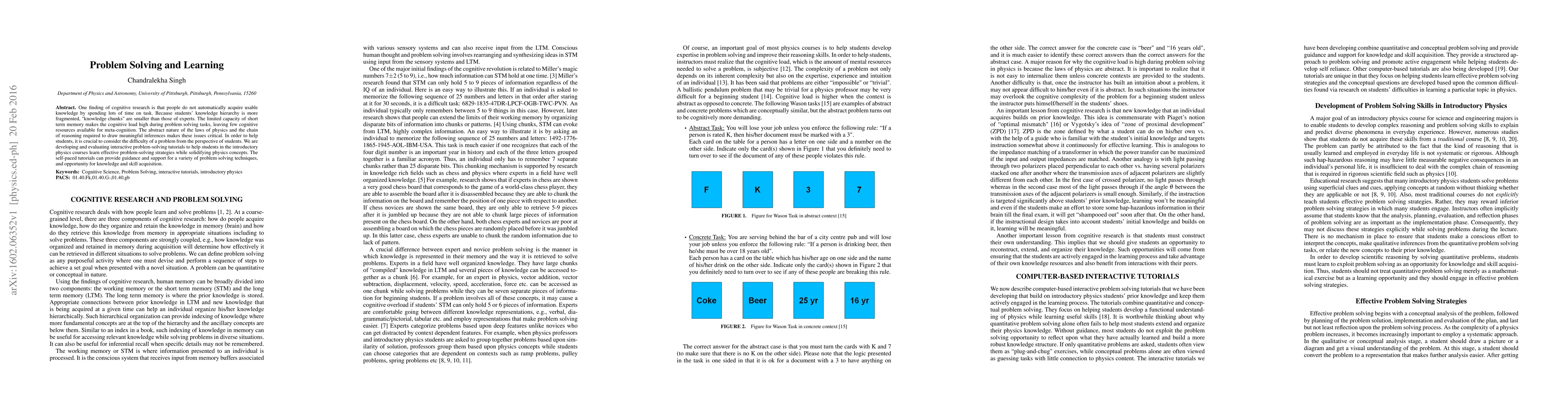 This research explores how students' fragmented knowledge and high cognitive load hinder effective problem solving in physics. It develops interactive tutorials to teach students problem-solving strategies and improve their understanding of physics concepts through guided, self-paced learning.