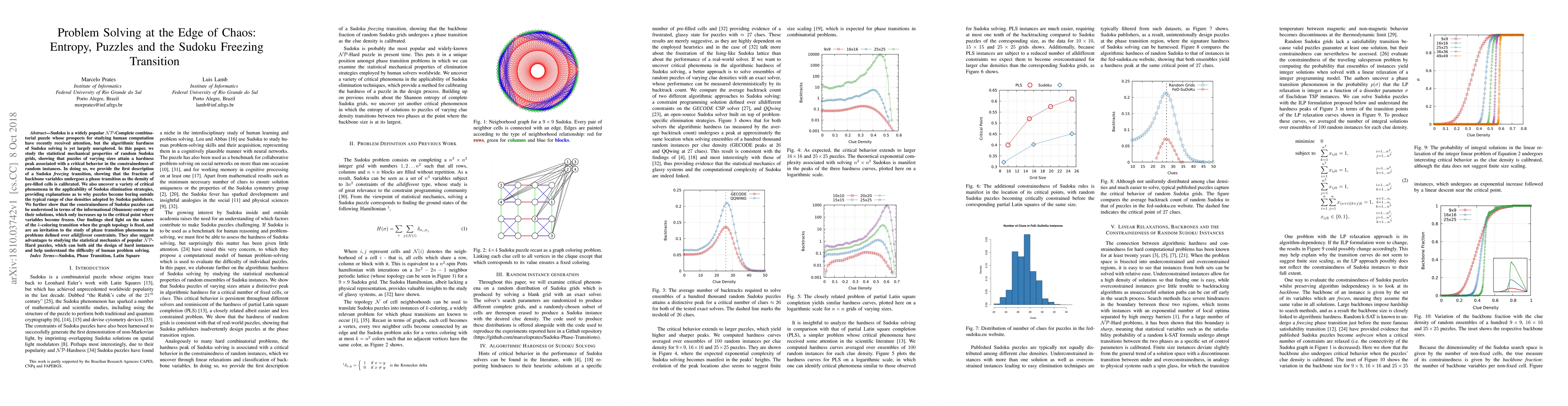 This work is novel in its application of statistical mechanics to understand the constrainedness and hardness of Sudoku puzzles, offering insights into phase transition phenomena in combinatorial problems and the connection between computational complexity and human problem-solving.
