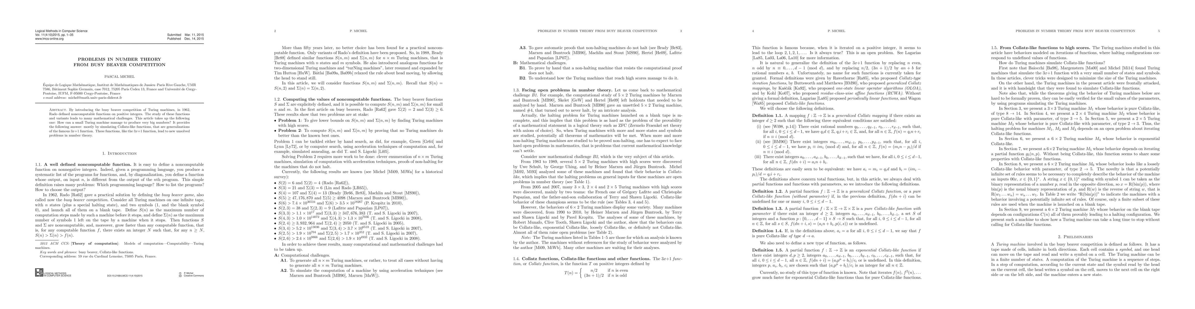 This paper explores how small Turing machines can generate large numbers by simulating Collatz-like functions, which generalize the 3x+1 problem, leading to new unsolved challenges in number theory.