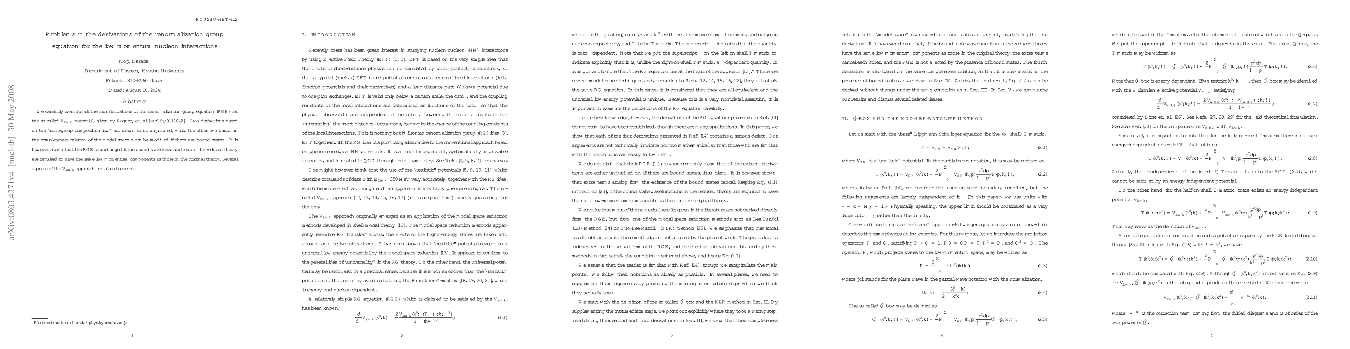 Researchers critically examine four derivations of a key equation in nuclear physics and find that two unjustified methods should be revised if bound states exist. They propose modifications to keep the original low-momentum components.