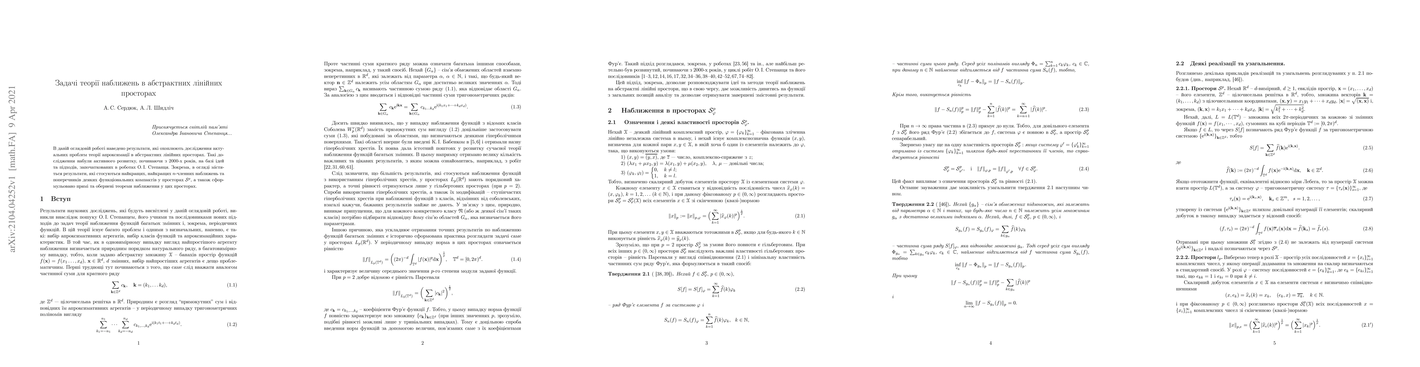 This review paper presents the results, which cover the study of current problems of approximation theory in abstract linear spaces. Such research has been actively developed since the 2000s, based on the ideas and approaches initiated in the articles by Stepanets. In particular, the review contains results concerning the best, best $n$-term approximations and widths of some functional compacts in the spaces ${\mathcal S}^p$. Direct and inverse approximation theorems are also formulated in these spaces.
