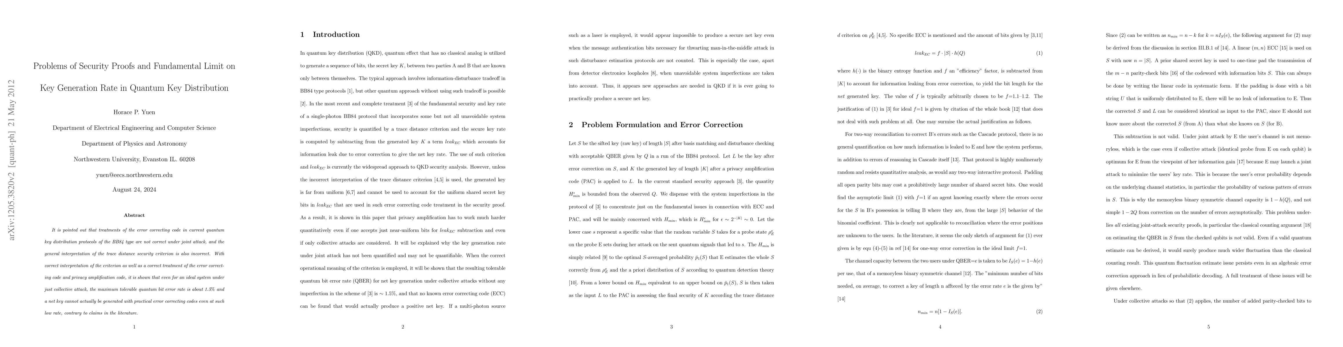 It is pointed out that treatments of the error correcting code in current quantum key distribution protocols of the BB84 type are not correct under joint attack, and the general interpretation of the trace distance security criterion is also incorrect. With correct interpretation of the criterion as well as a correct treatment of the error correcting code and privacy amplification code, it is shown that even for an ideal system under just collective attack, the maximum tolerable quantum bit error rate is about 1.5% and a net key cannot actually be generated with practical error correcting codes even at such low rates, contrary to claims in the literature.