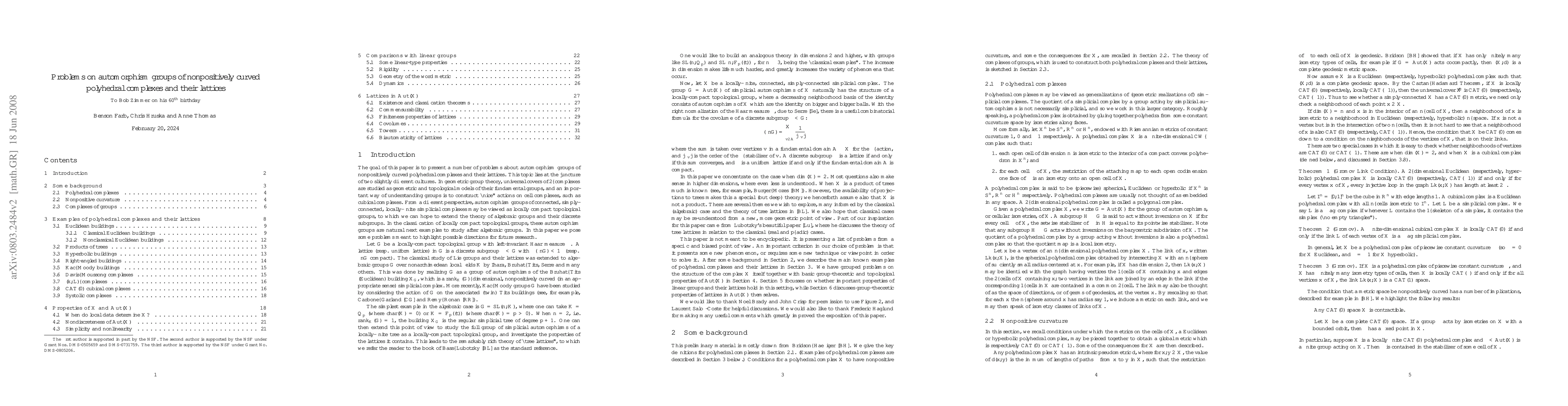 The goal of this paper is to present a number of problems about automorphism groups of nonpositively curved polyhedral complexes and their lattices, meant to highlight possible directions for future research.
