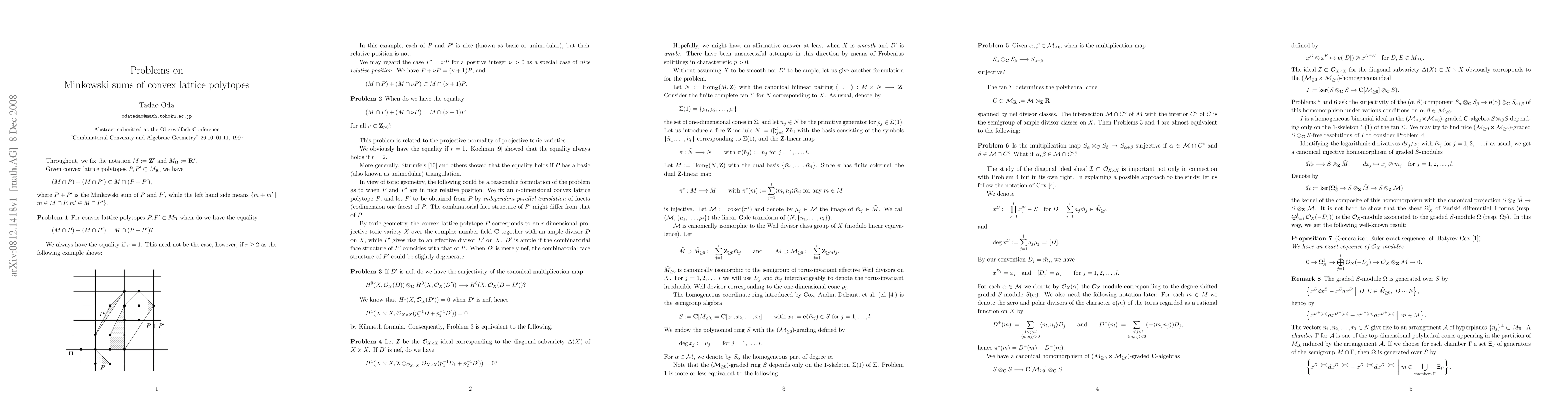 This paper was submitted to the Oberwolfach Conference "Combinatorial Convexity and Algebraic Geometry", October 1997. Let $M={\mathbb Z}^r$. For convex lattice polytopes $P,P'$ in ${\mathbb R}^r$, when is $(M \cap P)+ (M \cap P') = M \cap (P + P')$? Without any additional condition, the equality obviously does not hold. When the pair $(M,P)$ corresponds to a complex projective toric variety $X$ and an ample divisor $D$ on $X$, it is reasonable to assume that $P'$ corresponds to an ample (or, more generally, a nef) divisor $D'$ on the same $X$. Then the question correspons to the surjectivity of the canonical map \[ H^0(X,{\mathcal O}_X(D))\otimes H^0(X,{\mathcal O}_X(D'))\to H^0(X,{\mathcal O}_X(D+D')).\] When $X$ is nonsingular, the map is hoped to be surjective, but this remains to be an open question after more than ten years. The paper explores various variations on the question in terms of toric geometry.