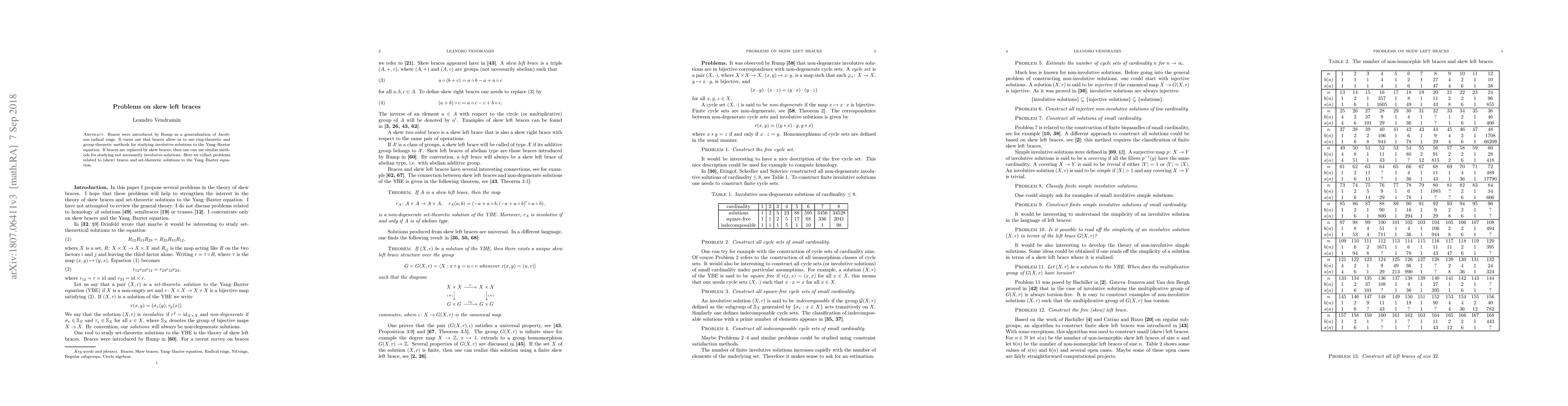 This paper explores the concept of skew left braces as a generalization of braces, using them to study non-involutive solutions to the Yang-Baxter equation through ring-theoretic and group-theoretic methods. It compiles various open problems related to skew braces and their set-theoretic solutions.