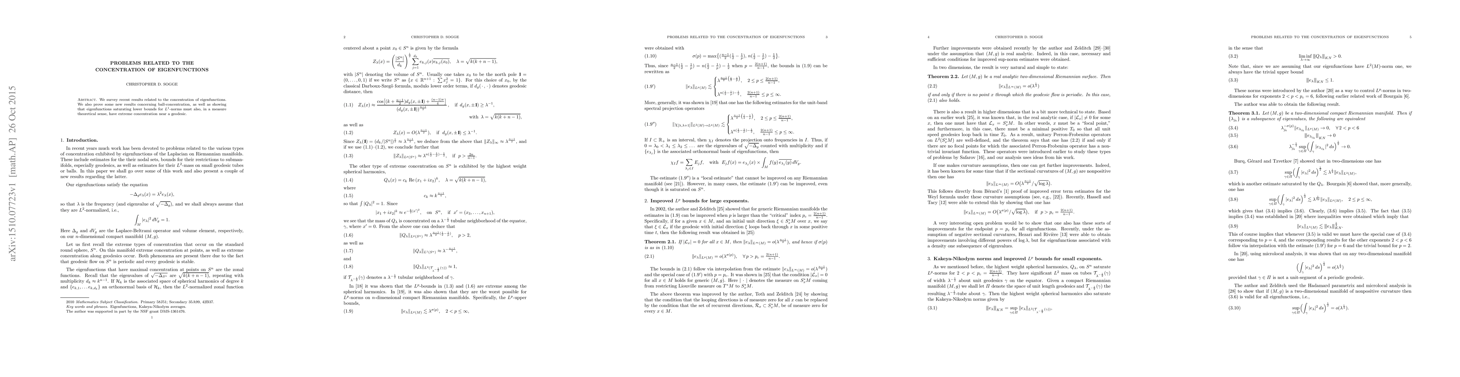 We survey recent results related to the concentration of eigenfunctions. We also prove some new results concerning ball-concentration, as well as showing that eigenfunctions saturating lower bounds for $L^1$-norms must also, in a measure theoretical sense, have extreme concentration near a geodesic.