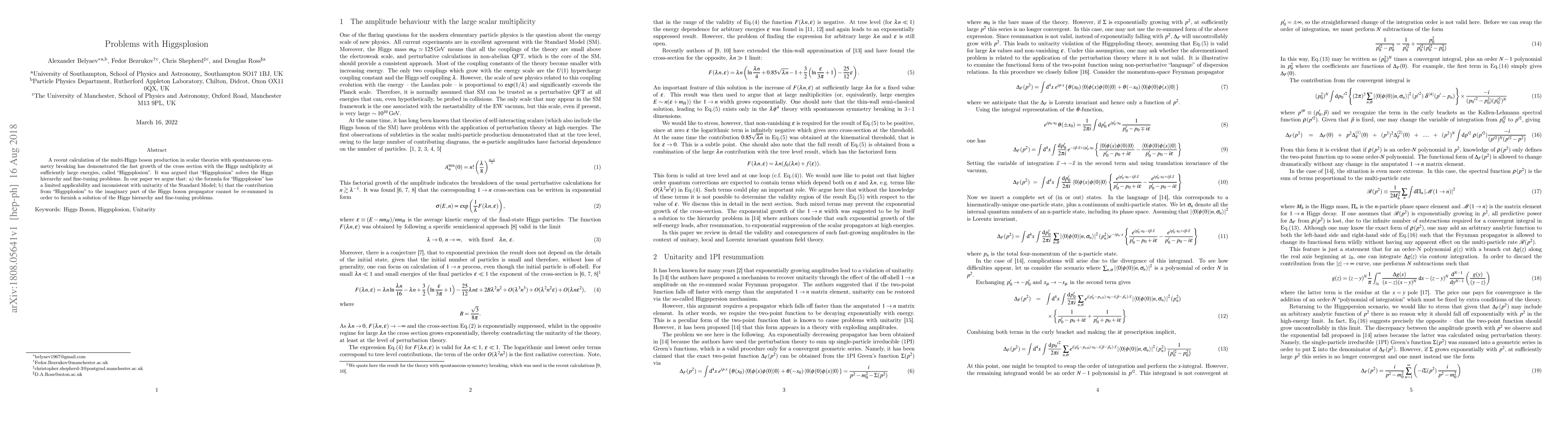 Research finds that 'Higgsplosion', a phenomenon in scalar theories with spontaneous symmetry breaking, may not solve the Higgs hierarchy and fine-tuning problems as previously thought, due to limitations and inconsistencies with unitarity and imaginary part calculations.