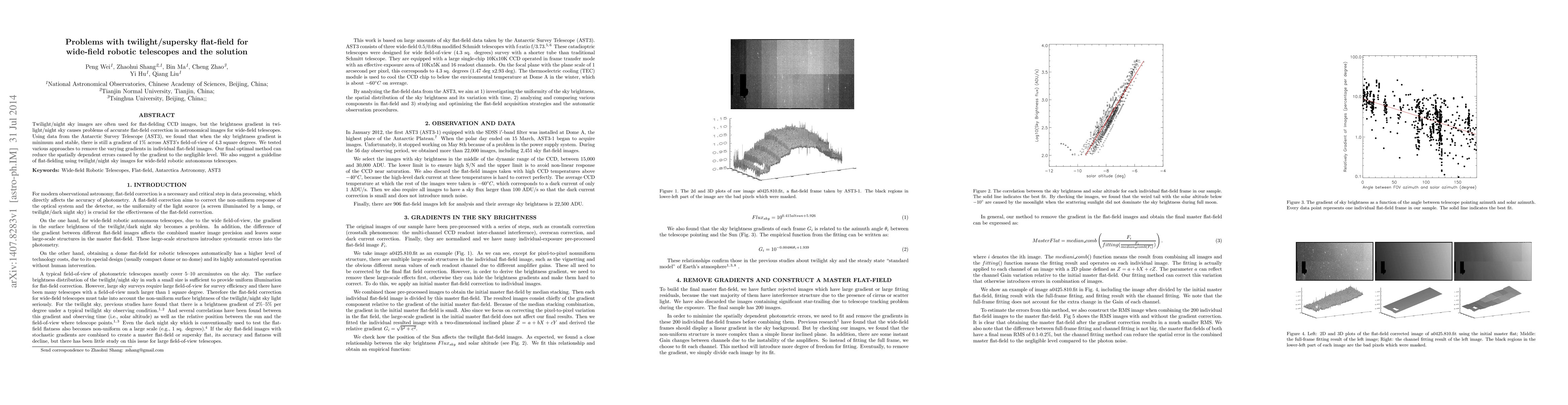 Researchers found that twilight/night sky images can still have a 1% brightness gradient even when the sky is at its darkest, causing errors in flat-field correction for wide-field telescopes. They developed an optimal method to remove these gradients, providing a guideline for using twilight/night sky images for flat-fielding in robotic telescopes.