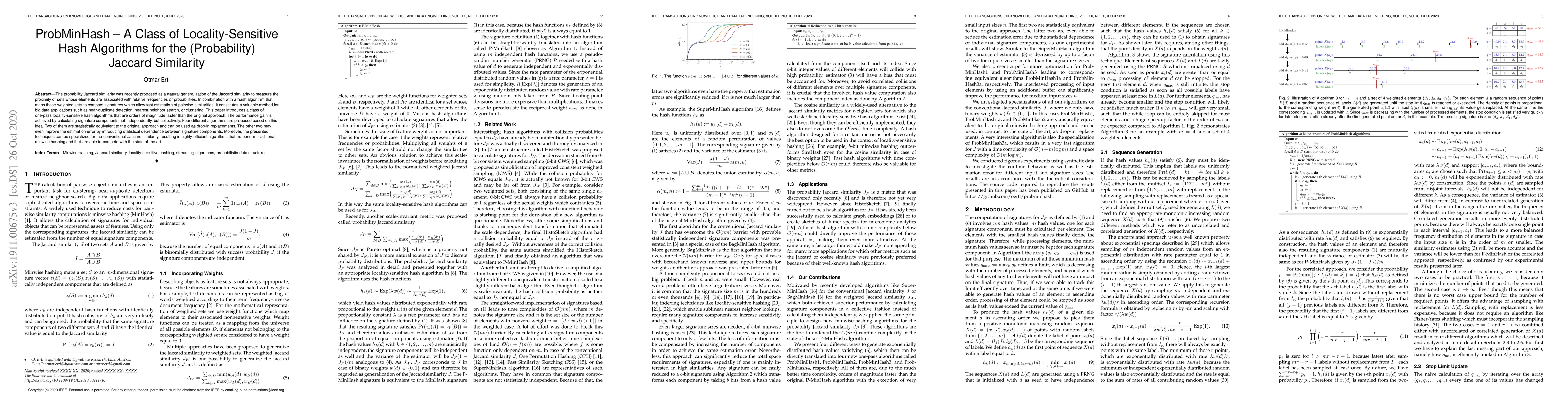 The probability Jaccard similarity was recently proposed as a natural generalization of the Jaccard similarity to measure the proximity of sets whose elements are associated with relative frequencies or probabilities. In combination with a hash algorithm that maps those weighted sets to compact signatures which allow fast estimation of pairwise similarities, it constitutes a valuable method for big data applications such as near-duplicate detection, nearest neighbor search, or clustering. This paper introduces a class of one-pass locality-sensitive hash algorithms that are orders of magnitude faster than the original approach. The performance gain is achieved by calculating signature components not independently, but collectively. Four different algorithms are proposed based on this idea. Two of them are statistically equivalent to the original approach and can be used as drop-in replacements. The other two may even improve the estimation error by introducing statistical dependence between signature components. Moreover, the presented techniques can be specialized for the conventional Jaccard similarity, resulting in highly efficient algorithms that outperform traditional minwise hashing and that are able to compete with the state of the art.