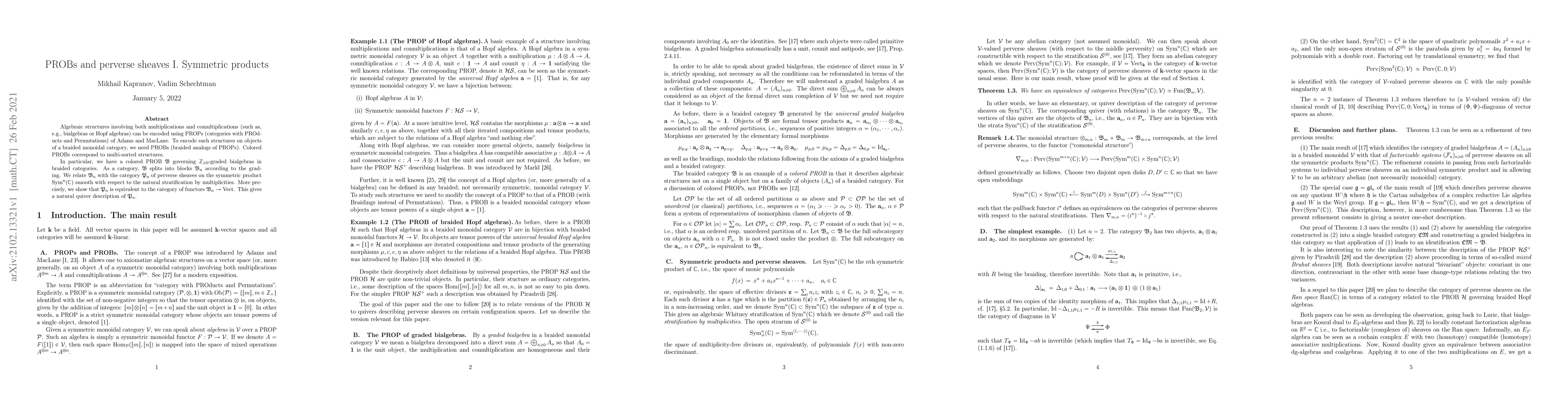 This paper establishes an equivalence between a colored PROB category and the category of functors from a braided monoidal category to vector spaces, providing a new description of perverse sheaves on symmetric products.
