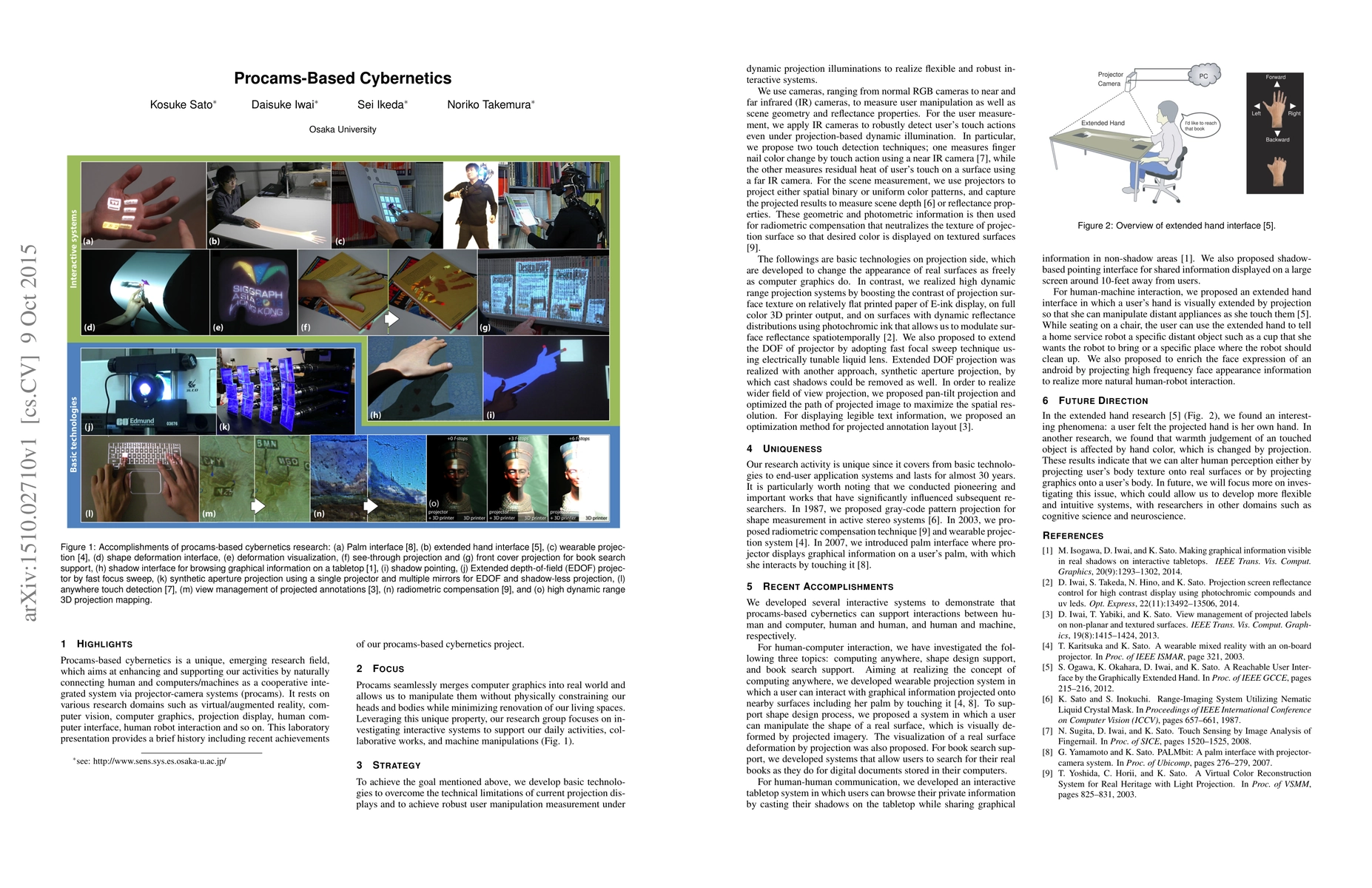 Procams-based cybernetics aims to seamlessly integrate human and machine activities through projector-camera systems, leveraging fields like virtual/augmented reality and computer vision. This laboratory presentation outlines the project's history and recent achievements in this emerging research field.