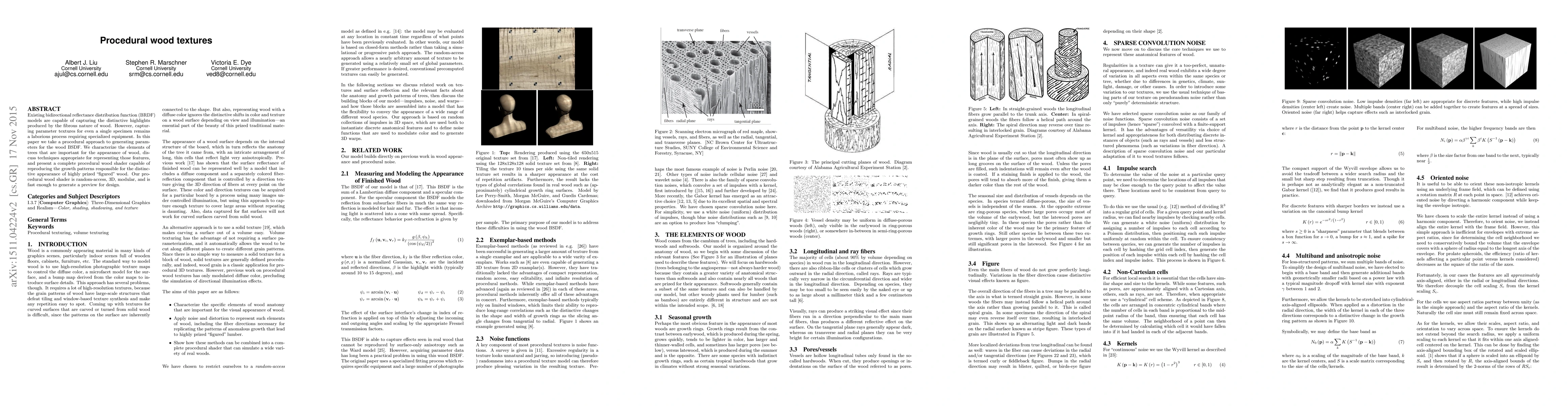 The paper presents a procedural approach to generating parameters for the wood Bidirectional Reflectance Distribution Function (BSDF), characterizing elements of trees important for wood appearance, and developing a complete procedural wood shader capable of reproducing growth patterns responsible for the distinctive appearance of 'figured' wood.