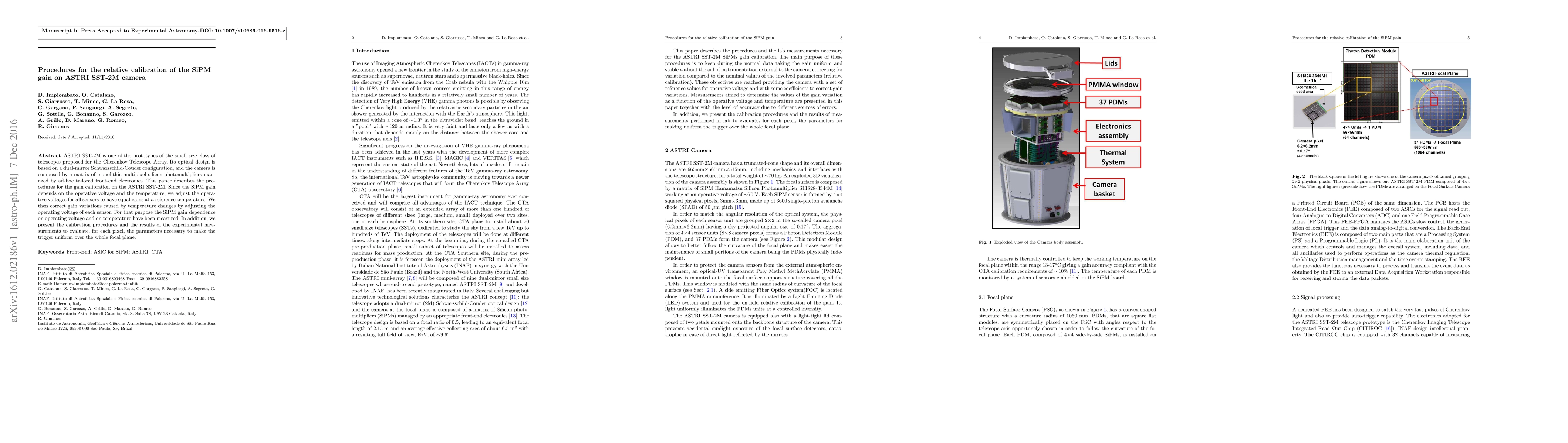 This paper details the procedures for calibrating the gain of silicon photomultipliers (SiPMs) in the ASTRI SST-2M telescope camera, focusing on adjusting operative voltages to equalize gains at a reference temperature and correcting for temperature-induced gain variations. The study also presents experimental results for uniform trigger across the focal plane.