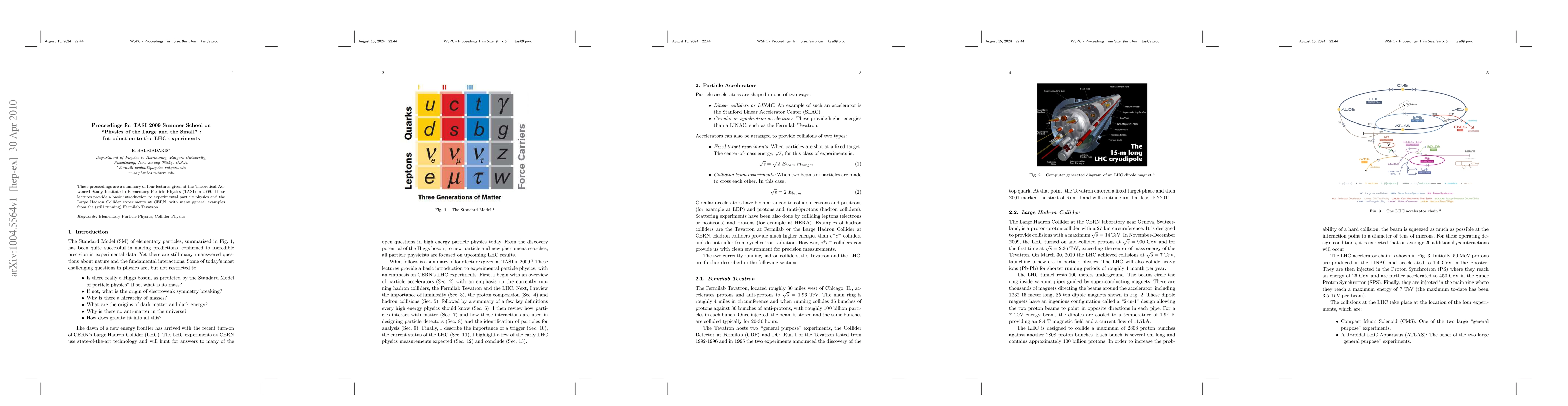 These proceedings summarize four lectures from TASI 2009 introducing experimental particle physics and the Large Hadron Collider (LHC) experiments at CERN, supplemented by examples from the Fermilab Tevatron. They serve as a foundational guide to LHC experiments.