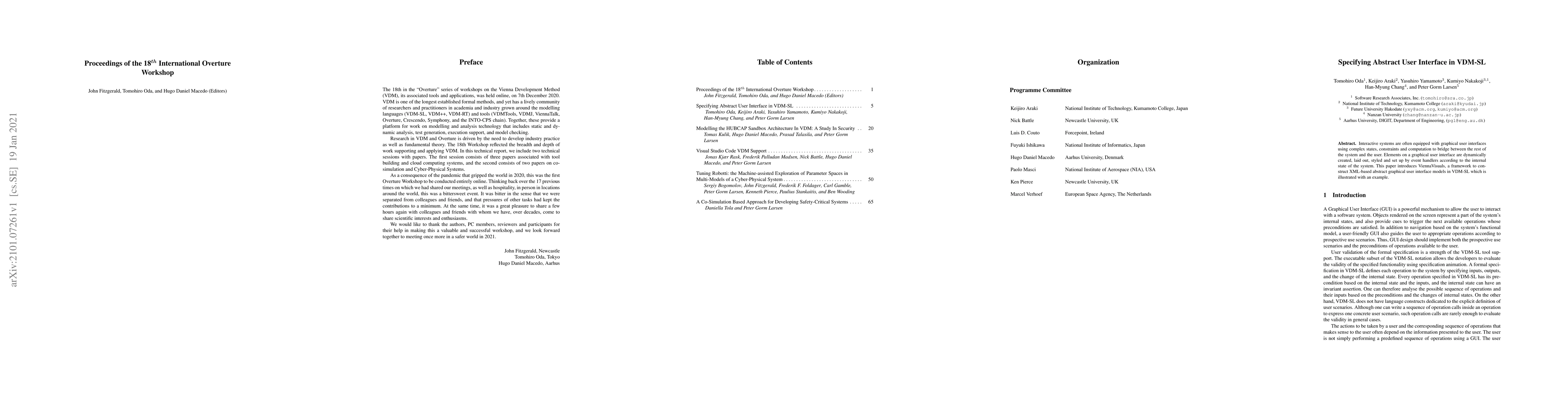 Researchers presented updates on the Vienna Development Method (VDM) and its tools at the 18th International Overture Workshop, focusing on collaboration infrastructure and collaborative modelling for Cyber-Physical Systems.