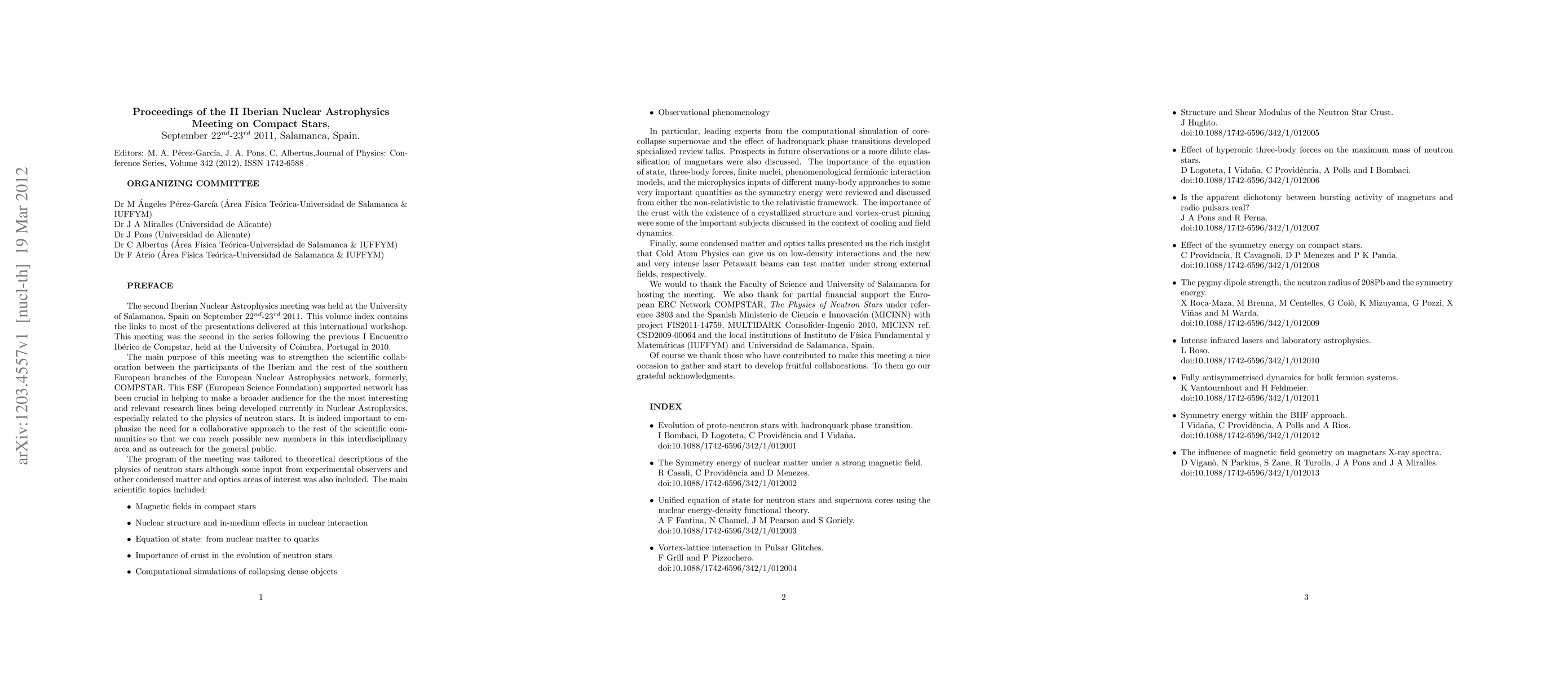 This volume contains most of the links to the presentations delivered at this international workshop. This meeting was the second in the series following the previous I Encuentro Ib\'erico de Compstar, held at the University of Coimbra, Portugal in 2010. The main purpose of this meeting was to strengthen the scientific collaboration between the participants of the Iberian and the rest of the southern European branches of the European Nuclear Astrophysics network, formerly, COMPSTAR. This ESF (European Science Foundation) supported network has been crucial in helping to make a broader audience for the the most interesting and relevant research lines being developed currently in Nuclear Astrophysics, especially related to the physics of neutron stars. The program of the meeting was tailored to theoretical descriptions of the physics of neutron stars although some input from experimental observers and other condensed matter and optics areas of interest was also included.