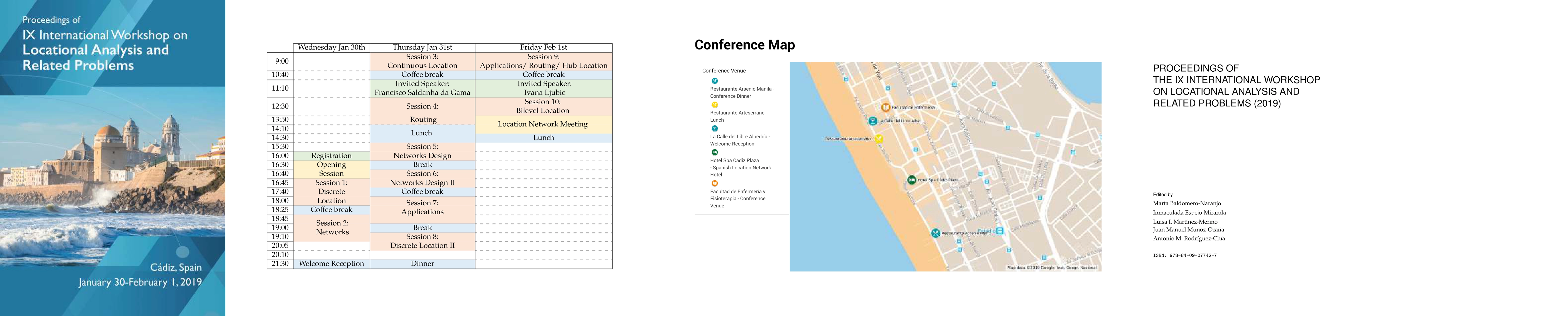The International Workshop on Locational Analysis and Related Problems will take place during January 30-February 1, 2019 in C\'adiz (Spain). It is organized by the Spanish Location Network and Location Group GELOCA (SEIO). GELOCA is a working group on location belonging to the Statistics and Operations Research Spanish Society. The Spanish Location Network is a group of more than 140 researchers distributed into 16 nodes corresponding to several Spanish universities. The Network has been funded by the Spanish Government. Every year, the Network organizes a meeting to promote the communication between its members and between them and other researchers, and to contribute to the development of the location field and related problems. Previous meetings took place in Segovia (September 27-29, 2017), M\'alaga (September 14-16, 2016), Barcelona (November 25-28, 2015), Sevilla (October 1-3, 2014), Torremolinos (M\'alaga, June 19-21, 2013), Granada (May 10-12, 2012), Las Palmas de Gran Canaria (February 2-5, 2011) and Sevilla (February 1-3, 2010). The topics of interest are location analysis and related problems. It includes location models, networks, transportation, logistics, exact and heuristic solution methods, and computational geometry, among others.